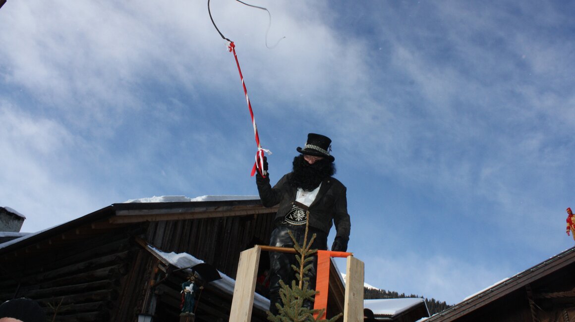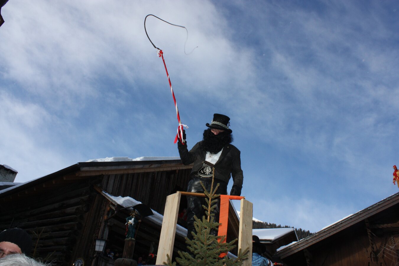 Auch dem Bajatzl wird beim Fisser Blochziehen so einiges an körperlicher Leistung abverlangt. Eine gute Vorbereitung, gute Kondition und Koordination sowie Trittsicherheit und Mut sind Voraussetzungen, um diese Rolle bestmöglich zu verkörpern.