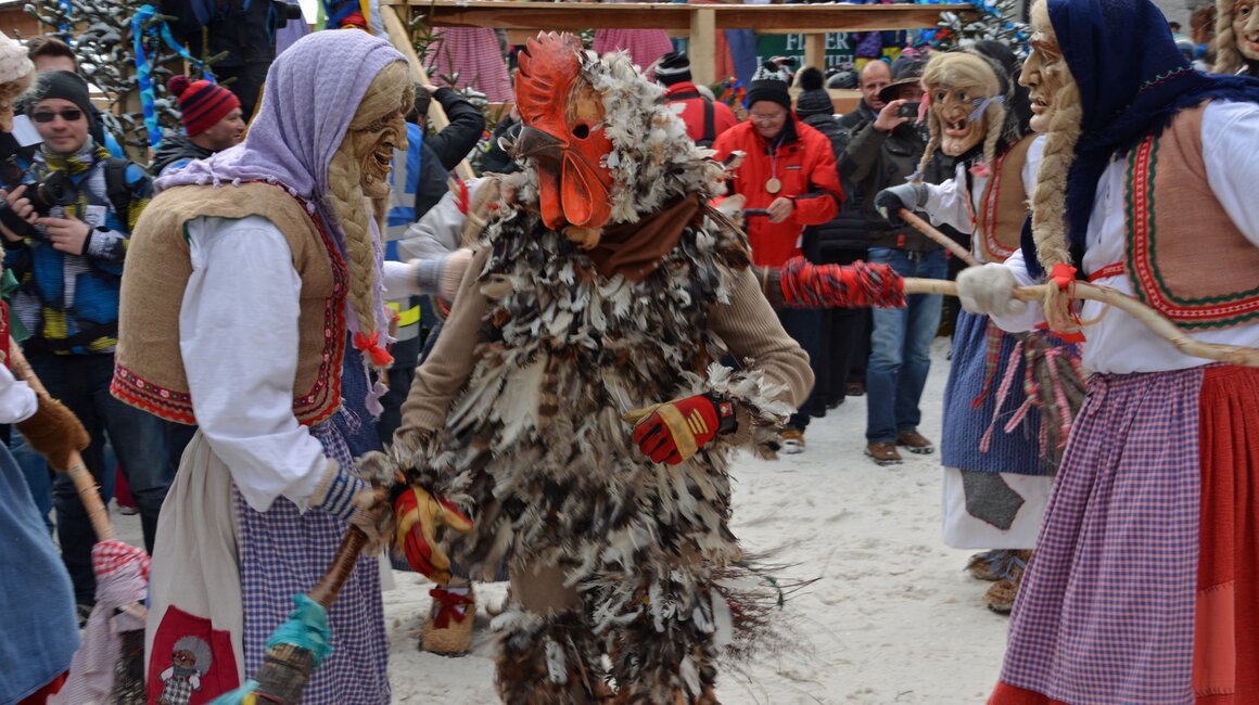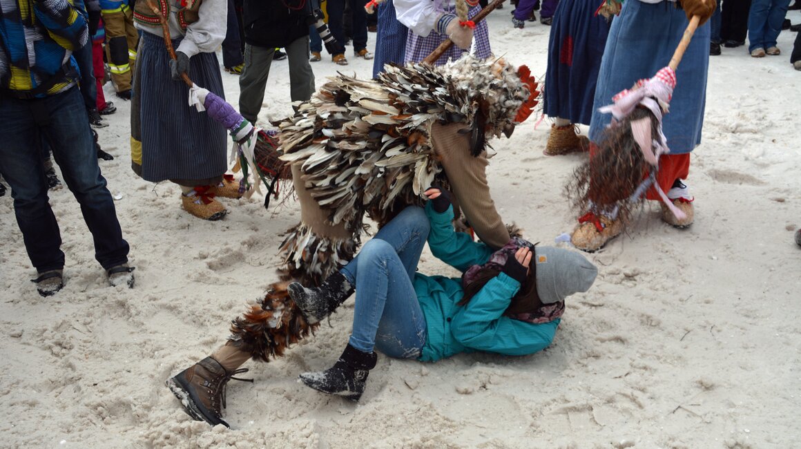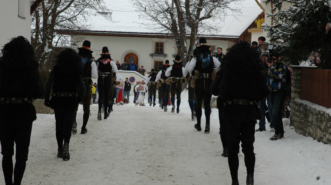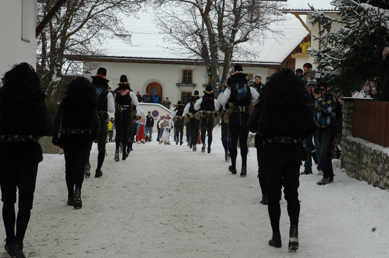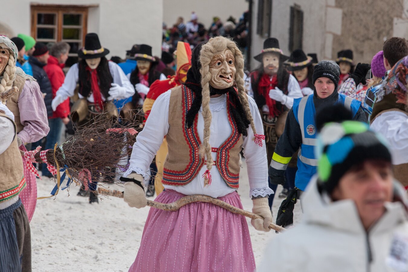Sie repräsentieren auch den Winter, der den Menschen früher sehr zu schaffen machte. Sie machen mit Geschrei und schwingenden Besen Platz für die nachfolgenden Teilnehmer, tanzen zu der Musik und drängen die Zuseher zurück.