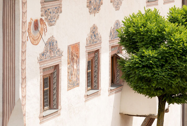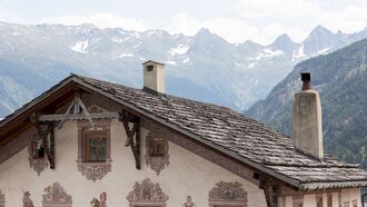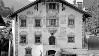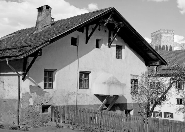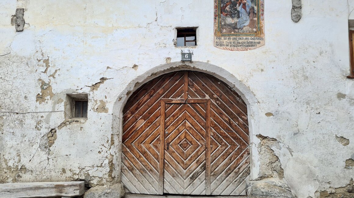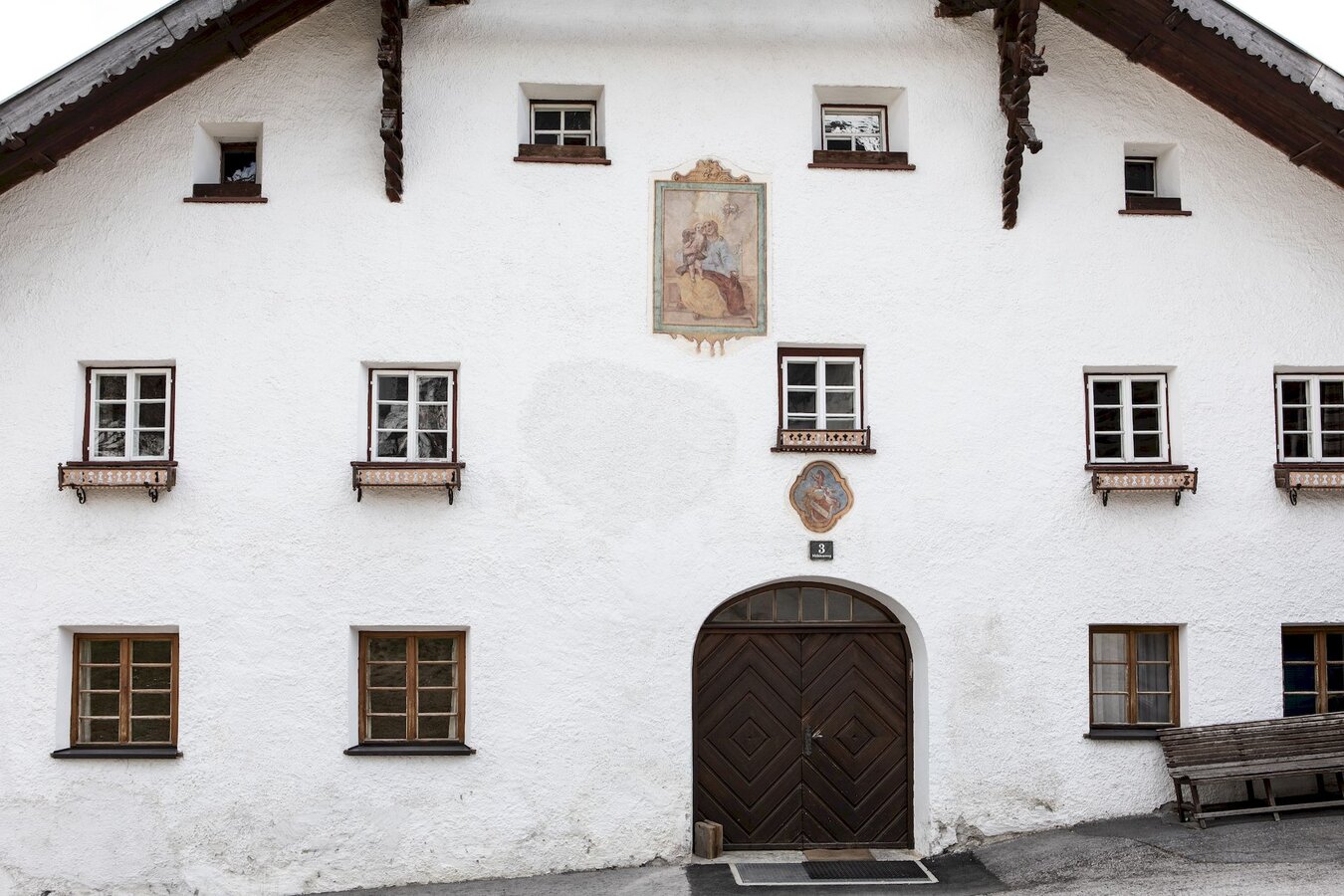 Einige Bauernhäuser zeugen noch heute mit ihren riesigen Eingangstoren von der früheren Lebensweise der Bewohner am Hochplateau. Die sogenannten DURCHFAHRTSHÄUSER waren äußerst praktisch. Deren hölzerne Eingangstore konnten nämlich komplett geöffnet werden. Die Bauern fuhren mit ihren Fuhrwerken und Ernten direkt ins Haus hinein. Die rätoromanische Bauweise stammt übrigens aus der Schweiz, von Graubünden. Ein eigener Baustil wurde in der Region nicht entwickelt.