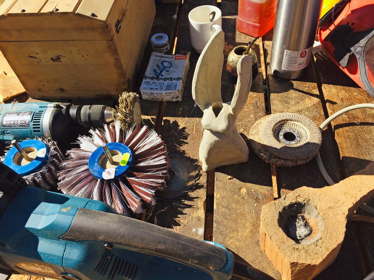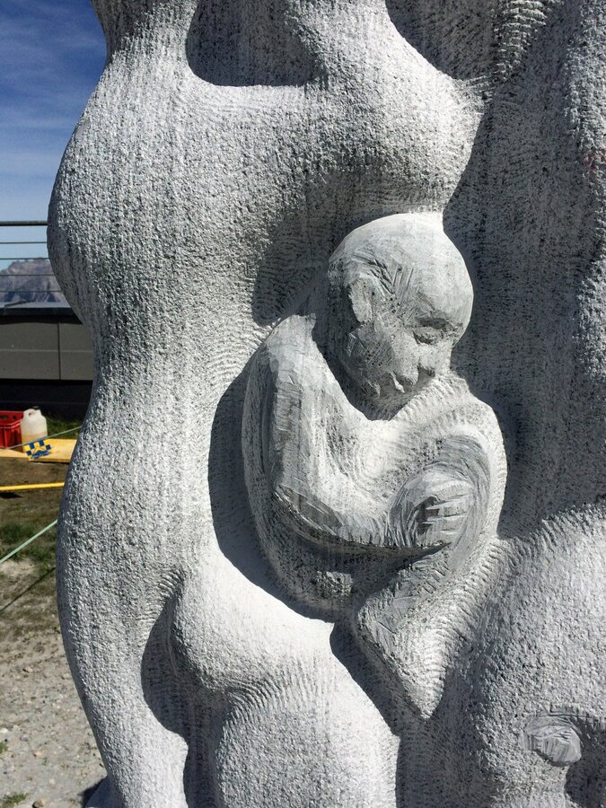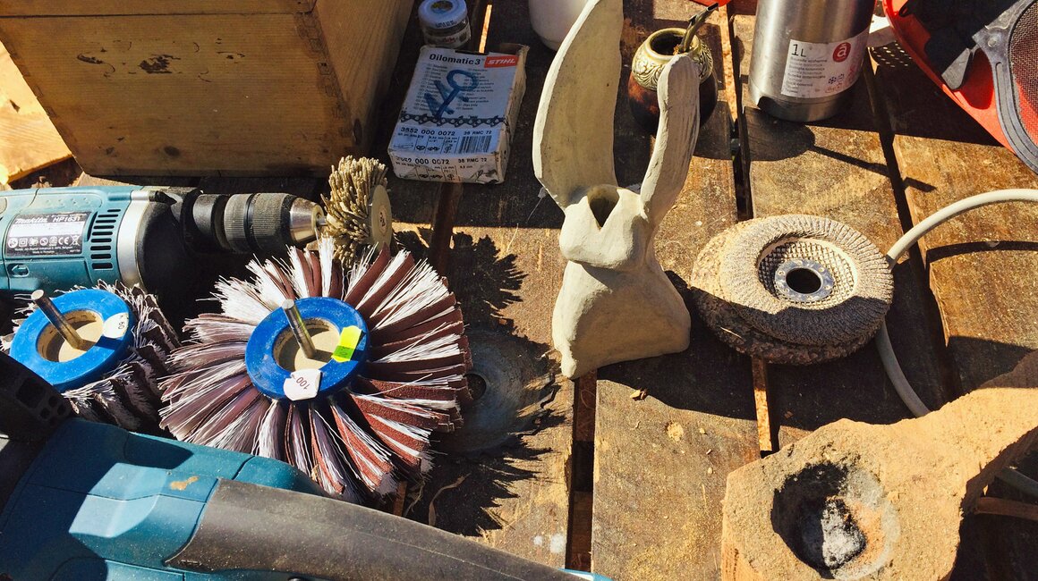 Kaum wusste ich, wohin ich meinen Blick als nächstes richten soll. Die Stimmung auf der Freiluft-Kunstbühne war schier elektrisierend. Künstler live bei der Arbeit zu sehen, bescherte nicht nur mir große Freude. Von allen Seiten umkreisten die Besucher die Bildhauer. Und wenn die Künstler mal nicht an ihrem Werk arbeiteten, dann wurde das noch unvollendete, aber bereits magisch anziehende Objekt, mit unbändiger Neugier unter die Lupe genommen. Auch ich konnte nicht anders und griff über den frisch polierten Stein oder ließ das duftende Sägemehl zwischen meinen Fingern durchrieseln. Kunst war an diesem Ort mit allen Sinnen erlebbar.