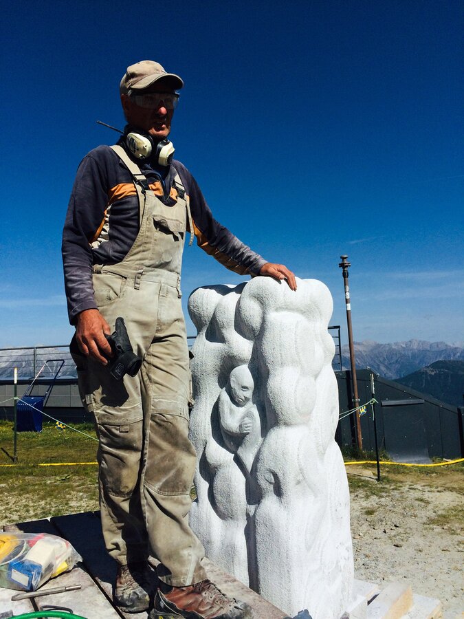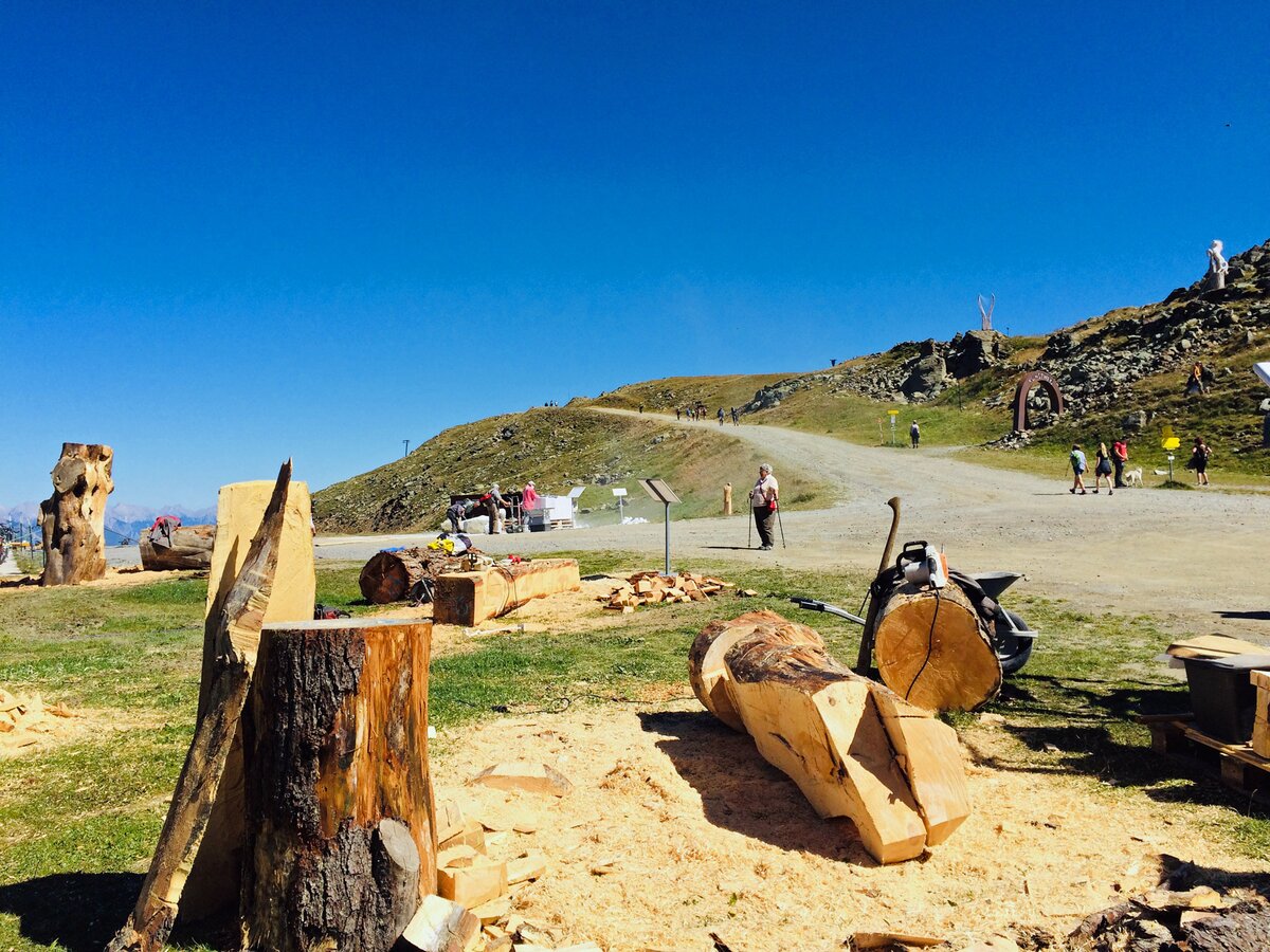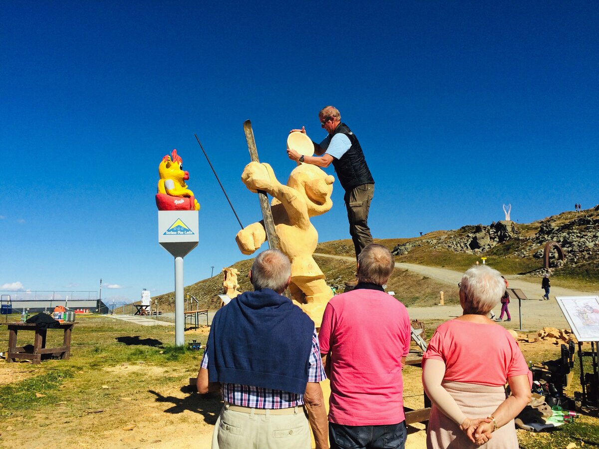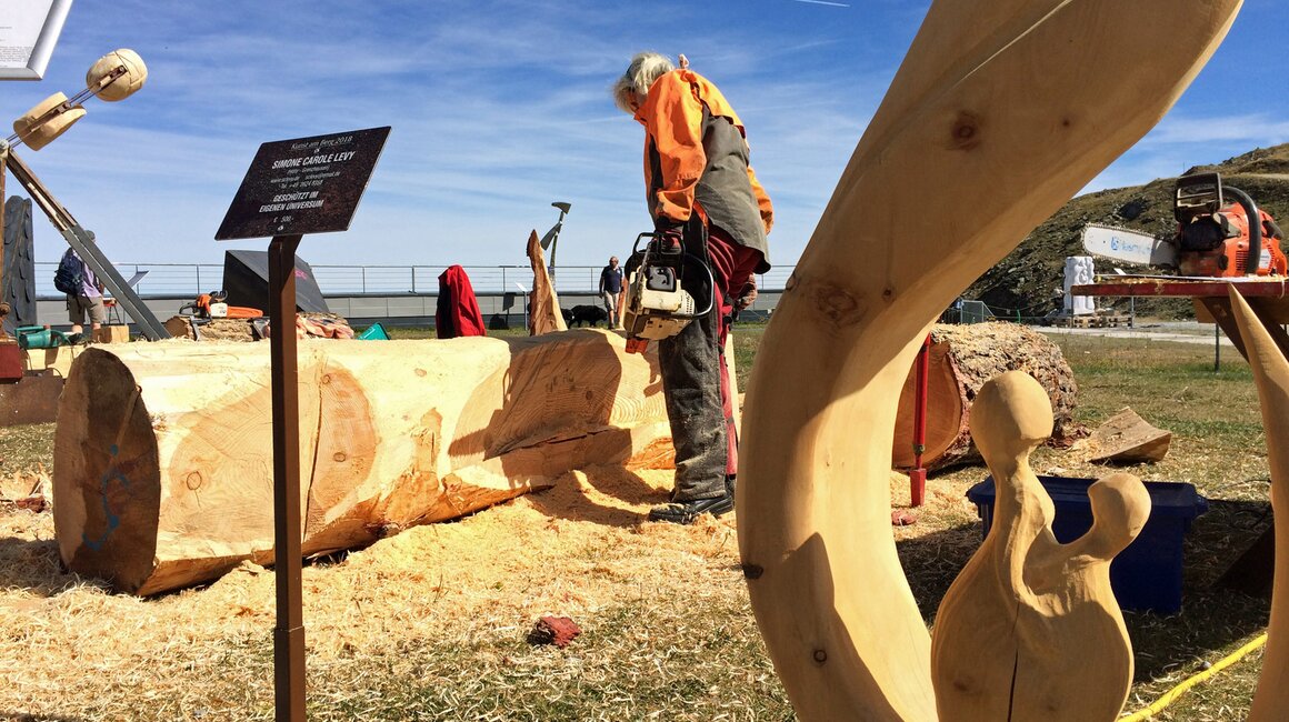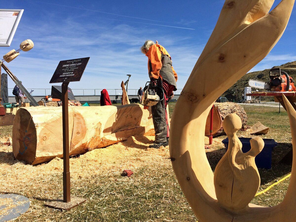 Insgesamt stammen die Teilnehmer von Kunst am Berg 2019 aus sechs Nationen. Glück im Unglück: Der Künstler aus China durfte bedauerlicherweise seine Motorsäge am Flughafen nicht mitnehmen. Glücklicherweise bekam er aber von den Bergbahnen umgehend ein perfektes Leihgerät gestellt.