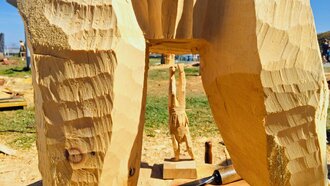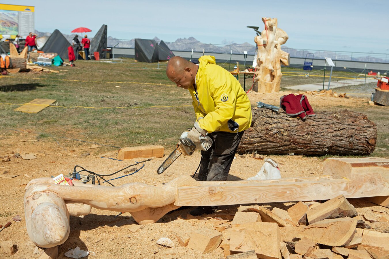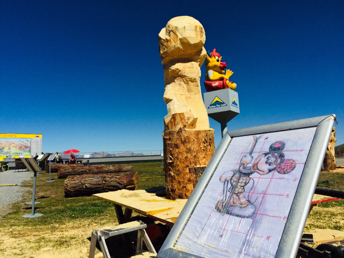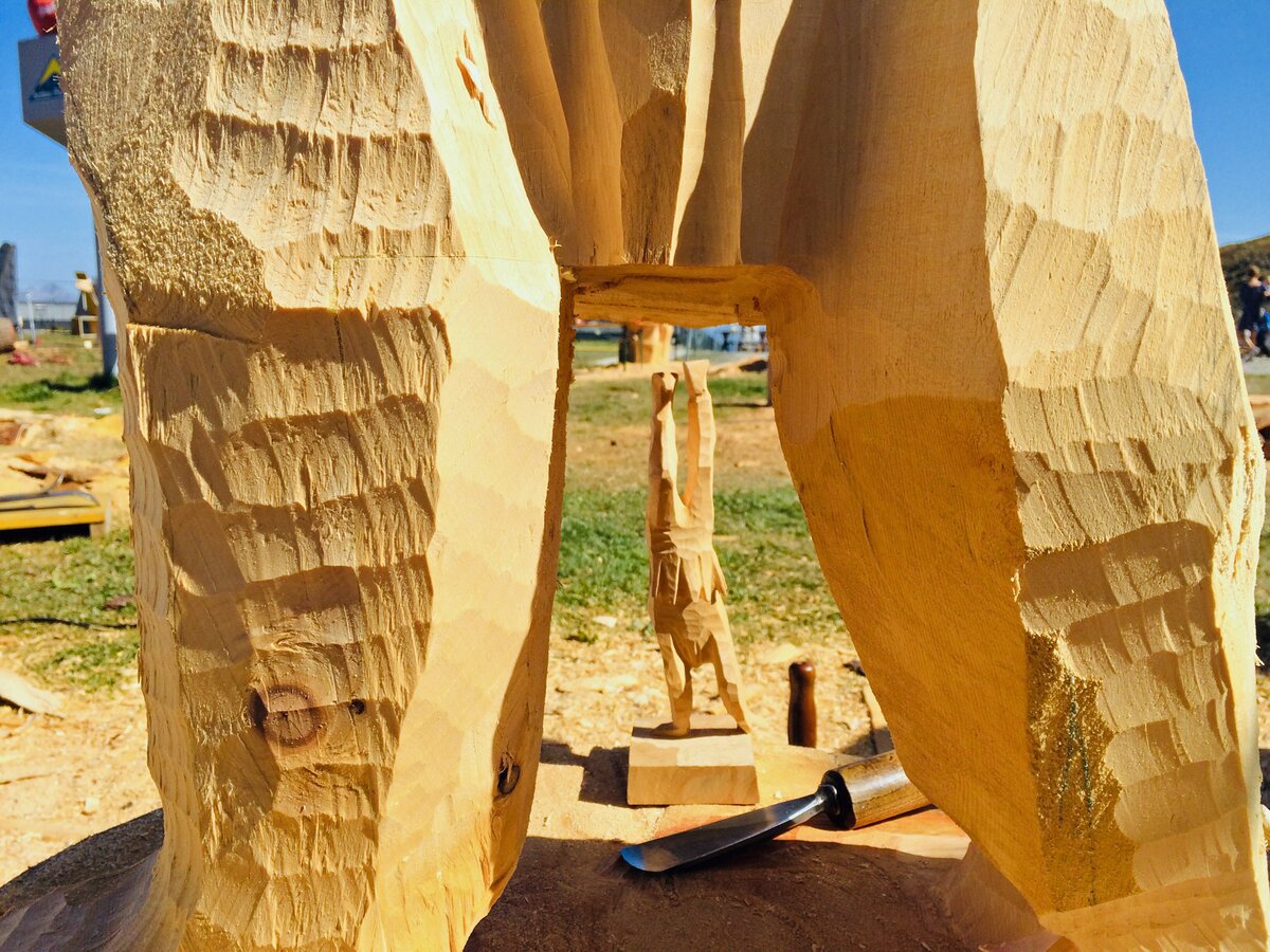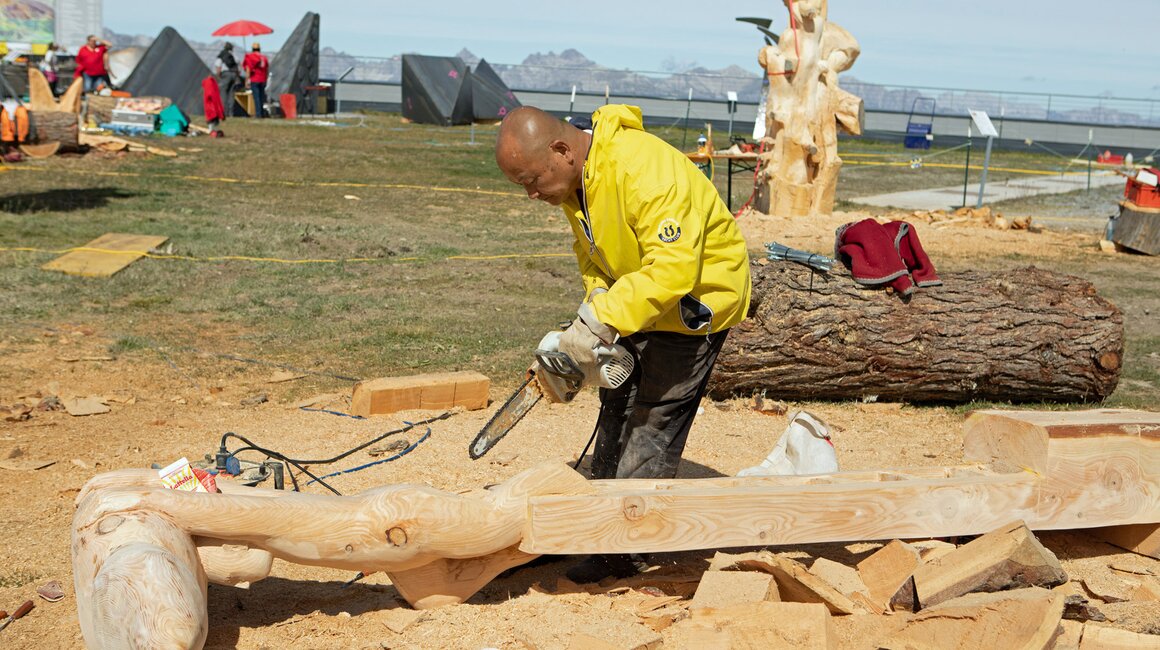 Insgesamt stammen die Teilnehmer von Kunst am Berg 2019 aus sechs Nationen. Glück im Unglück: Der Künstler aus China durfte bedauerlicherweise seine Motorsäge am Flughafen nicht mitnehmen. Glücklicherweise bekam er aber von den Bergbahnen umgehend ein perfektes Leihgerät gestellt.