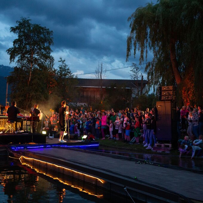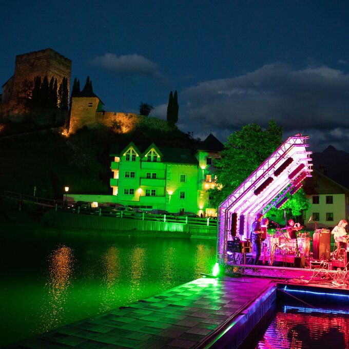 Der Blick auf die steinerne MITTELALTERBURG in Ladis ist eigentlich schon beeindruckend genug. Da braucht es doch weder einen romantischen SCHLOSSWEIHER zu ihren Füßen noch eine imposante schwimmende BÜHNE oder musikalische SHOWACTS! Oder doch? Also in Kombi harmonieren die „Bandmitglieder“ sehr gut miteinander. Die Konzertlocation kann was. Findest du nicht auch?
