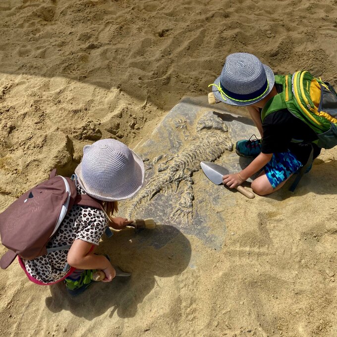 Hier dreht sich alles um Gesteine, Mineralien und Fossilien – faszinierende Zeugnisse der geologischen Vergangenheit der Alpen. Ausgestattet mit Schaufel und Bürste begaben sich die beiden auf eine aufregende Expedition durch das Gebiet der archäologischen Ausgrabungen. Spaß, Spannung und jede Menge Wissen zum Mitnehmen wird hier garantiert. Besonders beeindruckt war ich davon, wie motiviert die dreijährige Sophia den Motoriktrail mehrmals nutzte. Die Relaxstationen rund um das Georama bieten die perfekte Gelegenheit für eine kurze Pause, während man seinen Kindern beim Spielen zusehen kann. Ein weiteres Highlight sind die kunstvoll gemeiselten Kugelbahnen aus Stein. Die Kinder verfolgten hier begeistert, wie die Kugeln kreuz und quer entlang der Bahnen sausten.