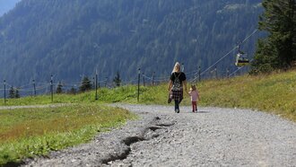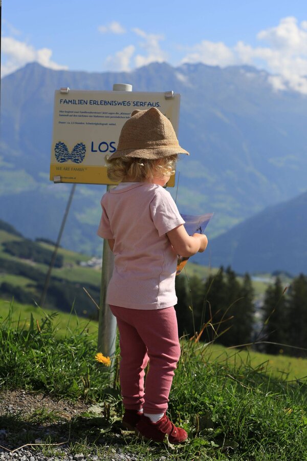 Der Themenweg ist wirklich empfehlenswert für Familien mit Kindern. Eine leichte Wanderung durch schattige Wälder und vorbei an bunten Wiesen mit großartiger Aussicht und verschiedenen Rätselstationen. Der kinderwagentaugliche Familien-Erlebnisweg bietet viel Entdeckerspaß im Erholungsgebiet Serfaus-Fiss-Ladis.