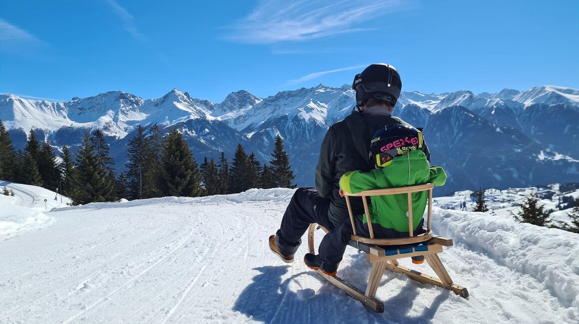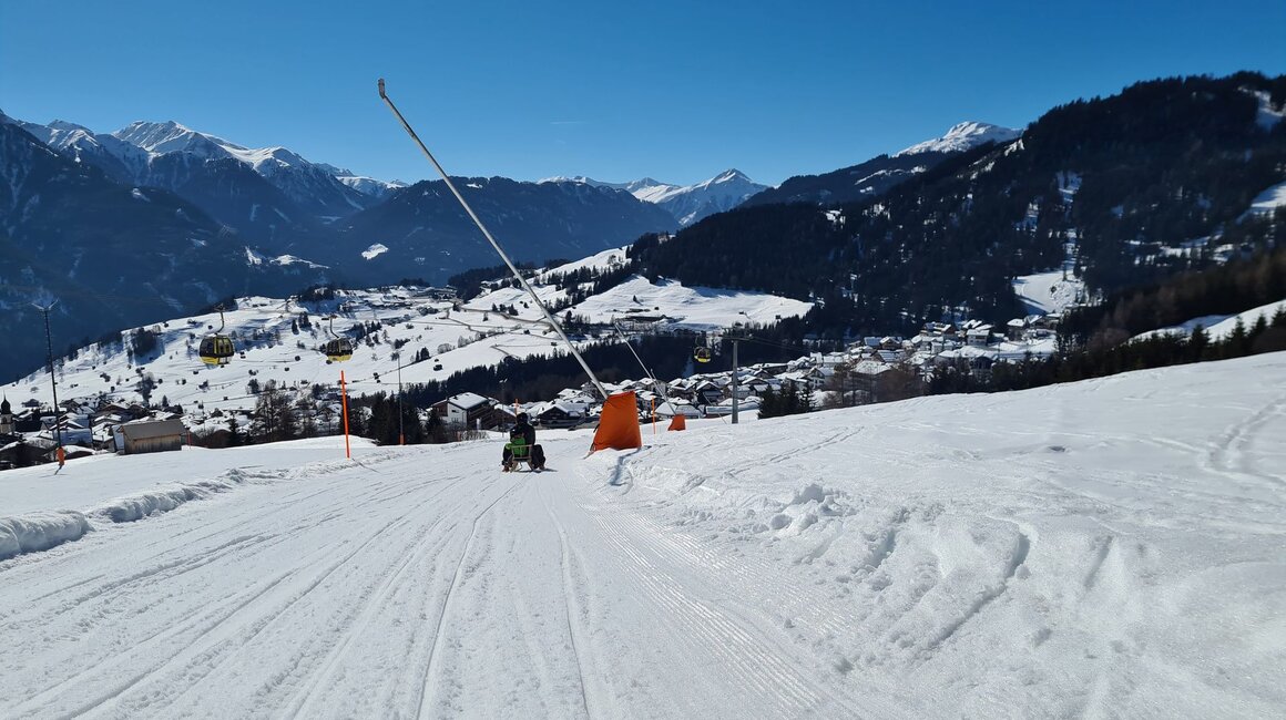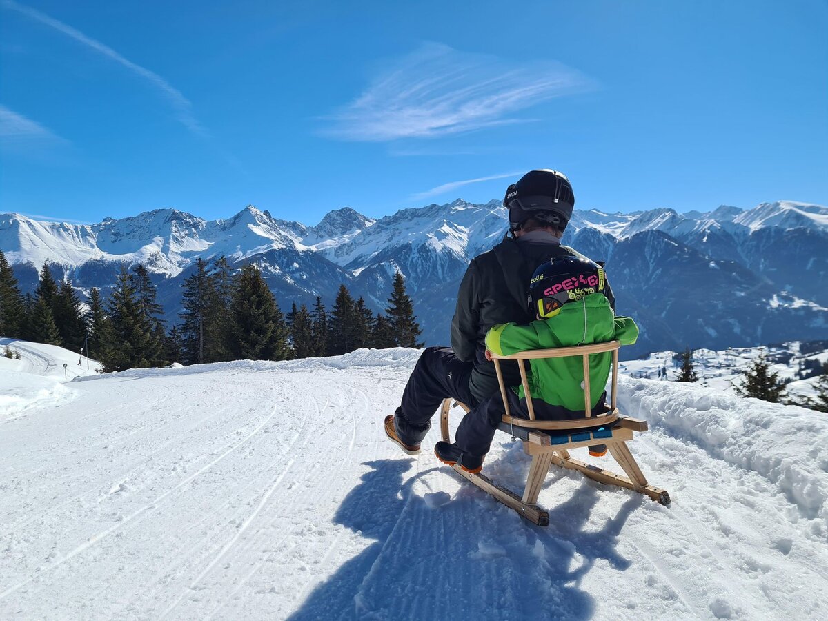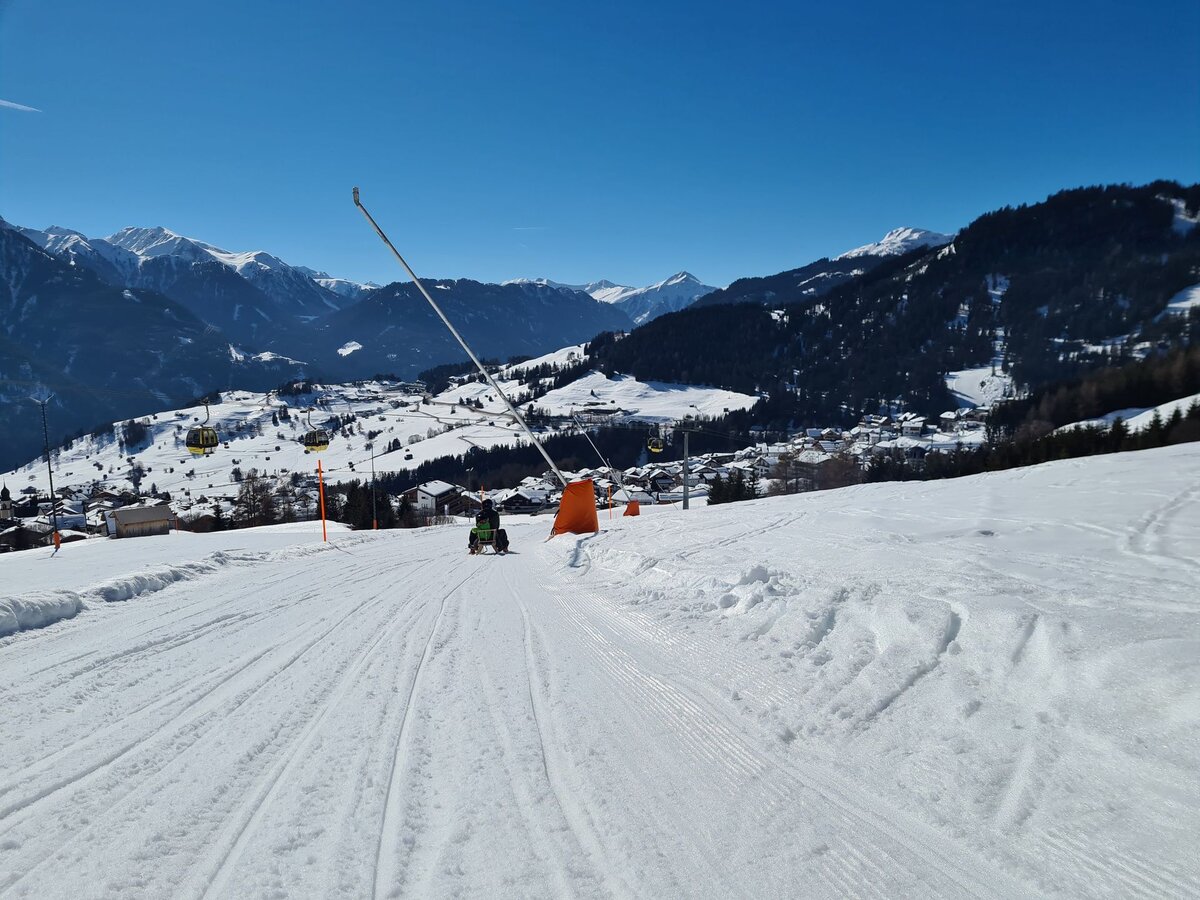 Dieser Themenweg ist sehr EMPFEHLENSWERT. Er ist breit angelegt und leicht zu erkunden, da er nur leicht abfallend ist. Damit beim Wandern auch bei größeren Kids keine Langweile aufkommt, bieten die Stationen, die den Sinnen einen Streich spielen, genügend Raum für Abenteuer. Hast du so einen kleinen Zwerg wie ich dabei? Dann nimm am besten eine Rodel mit, da besonders die kleinen Weltentdecker gerne schnell müde werden. Für Abwechslung sorgt die Möglichkeit, am Ende auf der Rodelbahn Fiss ins Tal zu gelangen. Auch im Sommer lädt der Fisser Kraft- und Sinnesweg zu einer interaktiven Familienwanderung ein und ist sogar mit Kinderwagen erlebbar. Was wohl Konstantins Lieblingsfarbe beim Wandern ist? SCHNEEWEISS oder doch WIESENGRÜN?