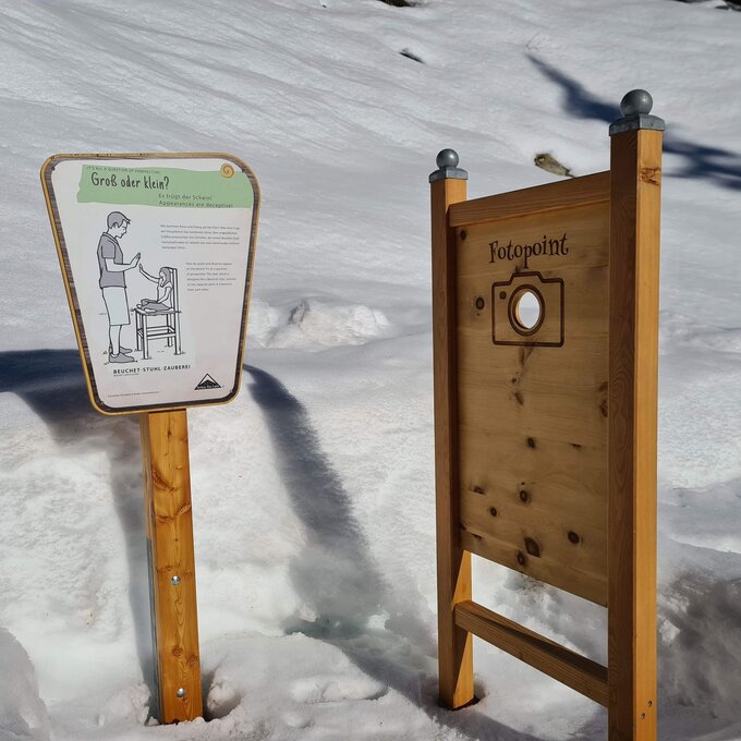 Beim FOTOPOINT wird dem Besucher ein Streich gespielt. Leider will der kleine Abenteurer nicht seine tolle Rodel wechseln und auf der anderen Platz nehmen. Und so bleibt uns heute die optische Täuschung mit Zwergen und Riesen leider verborgen. Beim nächsten Mal klappt's bestimmt.