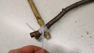 Lege die vier Stöcke zu einem Rechteck zusammen. Falls du keine passenden Stöcke findest, könnt ihr sie mit einer Säge zurechtsägen. Binde die Enden mit einer Schnur fest, sodass ein stabiler Rahmen entsteht.