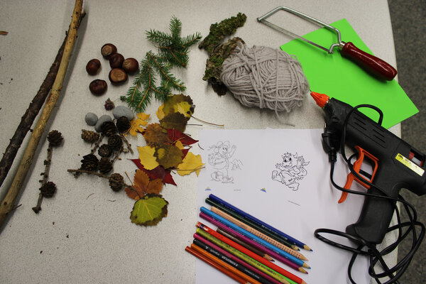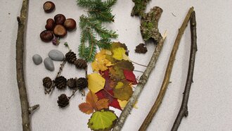 Mache mit deinen Eltern oder Freunden einen Spaziergang und sammle, was der Herbst zu bieten hat – Blätter, Zapfen, Kastanien, kleine Zweige, Rinde oder Moos.