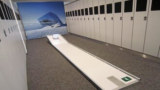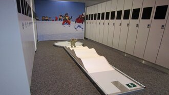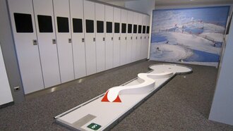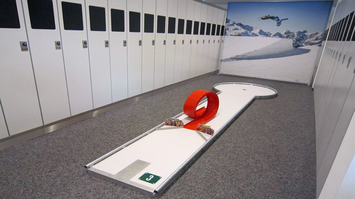 Auf Bahn Nummer 7 wartete das nächste beeindruckende Hindernis. In Miniaturform wurde das Schloss der Nine Queens nachgebaut und über einen der 3 Kicker musste man den Minigolf-Ball in Richtung Loch befördern. Nach einer Wellenbahn, einem Rail-Hindernis, einer Steilkurve und vorbei an den Pistenbullys, ging es zum Zwölften und letzten Loch.