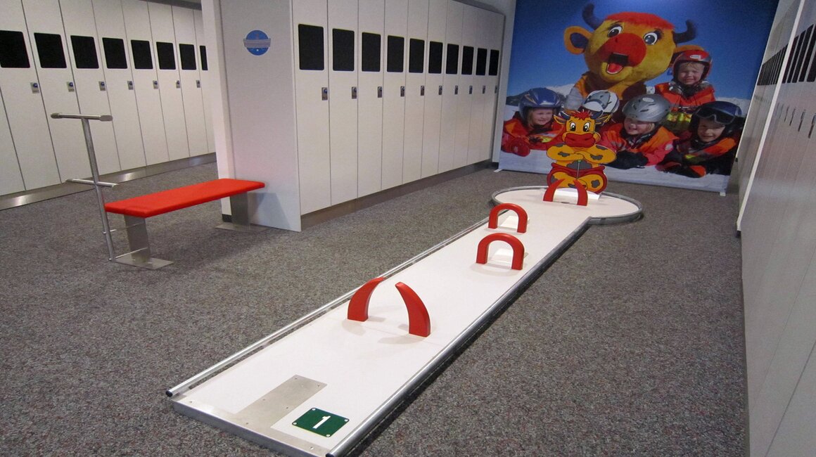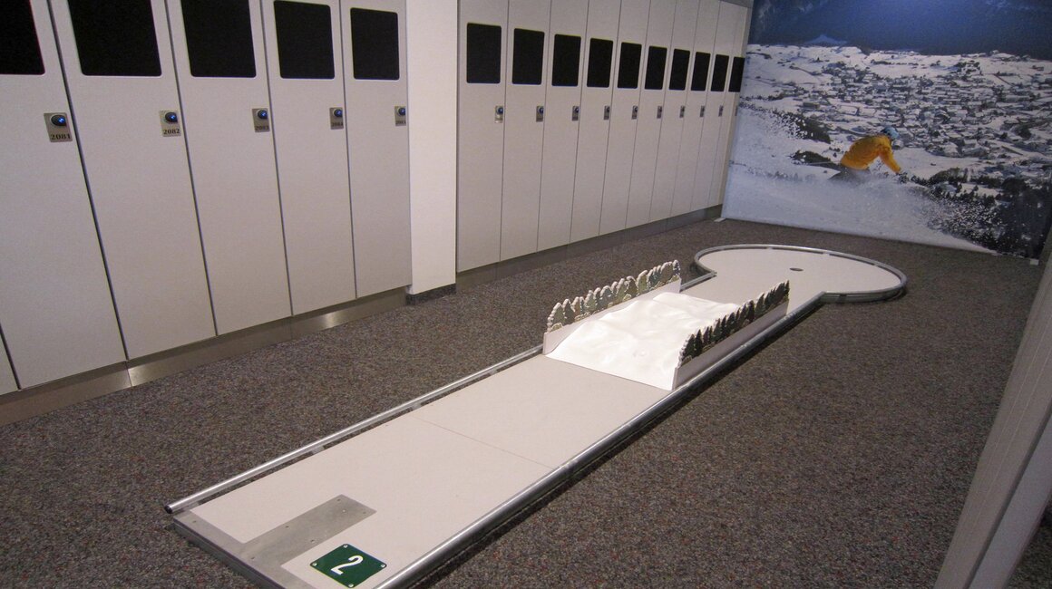 Wir staunten nicht schlecht, als wir die Anlage aus der Nähe betrachteten. Es erwarteten uns nämlich nicht die gewohnten „Standardbahnen“, sondern eigens konzipierte Bahnen mit tollen Wintermotiven im Hintergrund. Und wer denkt, dass die Bahnen einfach zu bespielen sind, der wird sich noch wundern. Auch für Erwachsene ist die Herausforderung der Minigolf-Bahnen sehr groß. Direkt vor uns lieferten sich mehrere Familien richtig spannende Duelle. Mama und Papa gegen die Kids oder Mama und Tochter gegen Papa und Sohn lauteten die heißen und emotionsgeladenen Duelle.