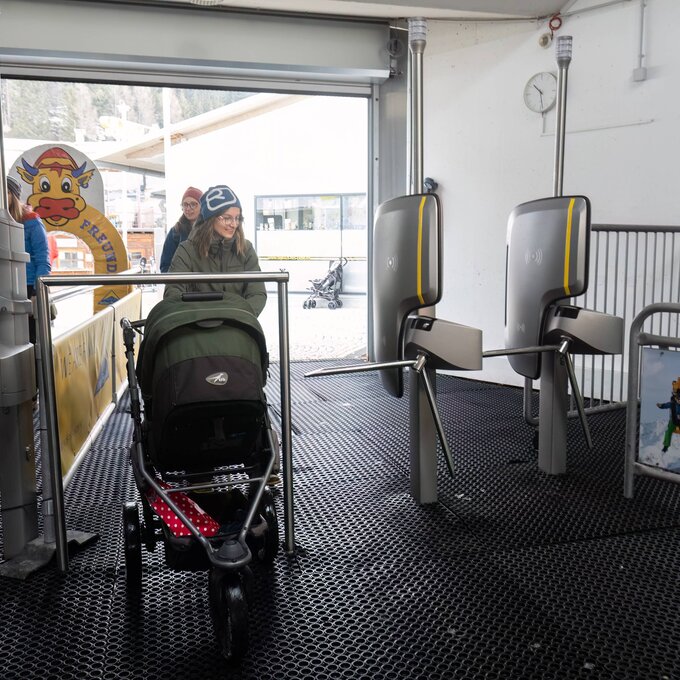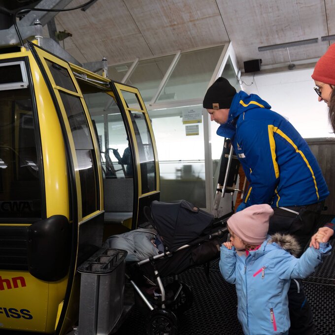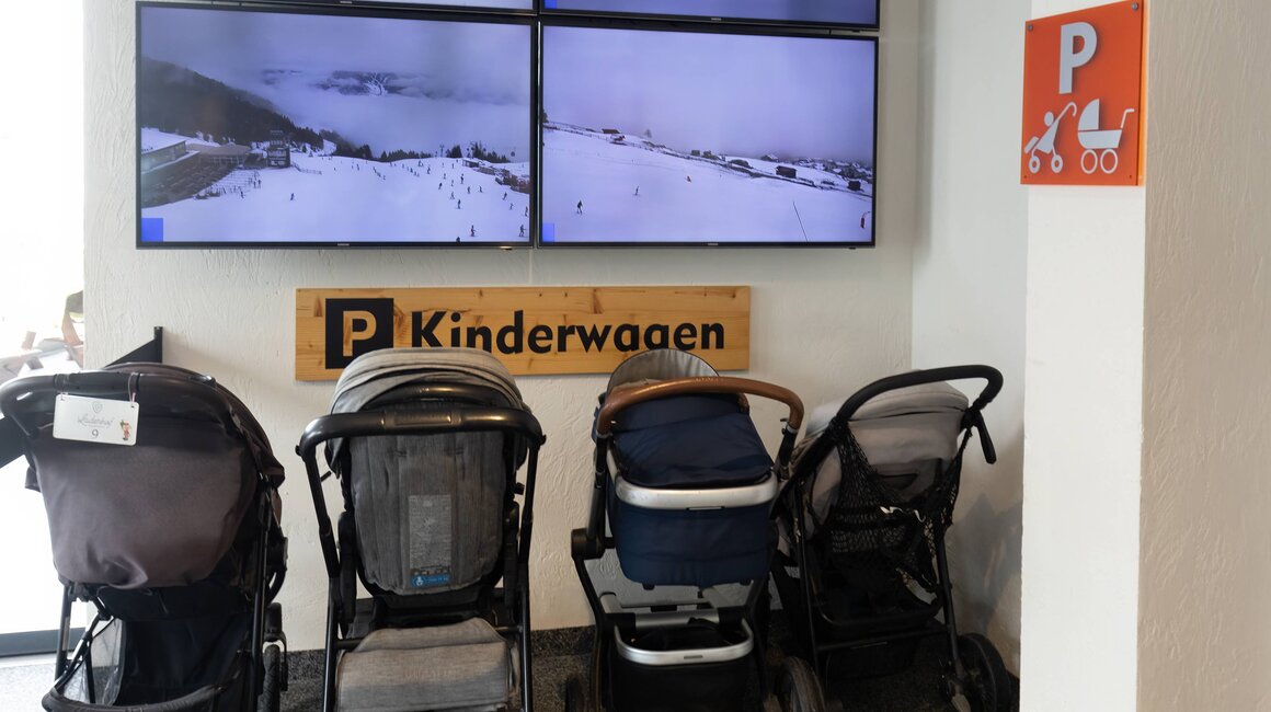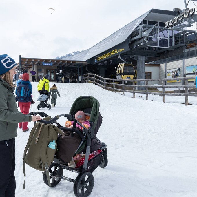 *Die Sonnenbahn ist zwar absolut kinderwagentauglich, jedoch ist sie nur eine 6er-Gondel. Die maximale Türöffnungsbreite beträgt 60 cm und der Platz ist etwas knapp. Mit etwas Baucheinziehen und nicht allzu breitem Kinderwagen klappt die Beförderung aber wunderbar. Zudem ist das Liftpersonal äußerst hilfsbereit.