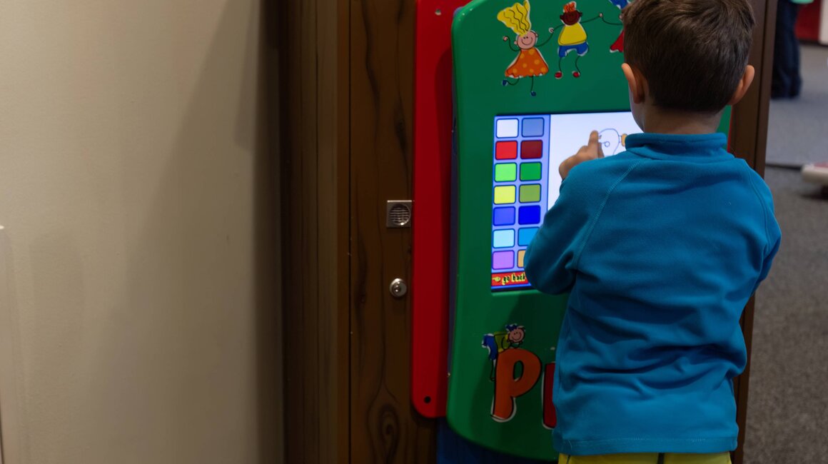 Im Kids Loft gibt es aber noch viel mehr zu entdecken. Besonders spannend für die Kleinen sind die Motorikschleifen. Diese kennen sie schon von zuhause. Mit ihren kleinen Fingern können sie sich außerdem an den Wand-Stationen austoben. Wie es bereits bei unserem ersten Testobjekt der Fall war, ist ihre Höhe ideal. Zudem finden sich hier oben auch klassische Spiele wie Memory. Unser Test-Opa wird heute zum Duell herausgefordert. Auch in die digitale Welt können die Kinder eintauchen. Ein Spieltisch und ein Kinderkino bieten reichlich Abwechslung. Praktisch: Nehmen die Eltern im unteren Stock des Restaurants Platz, so können sie die Kinder über Monitore beim Filmeschauen im Auge behalten.