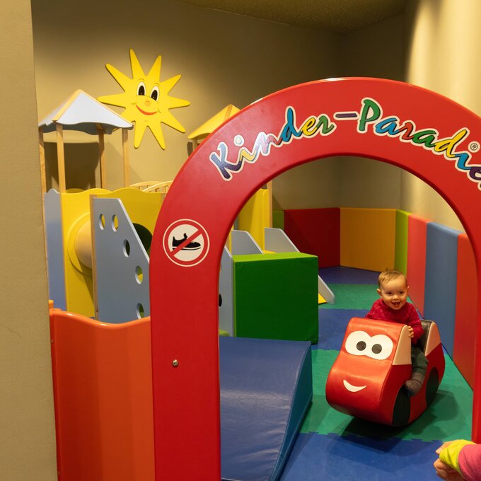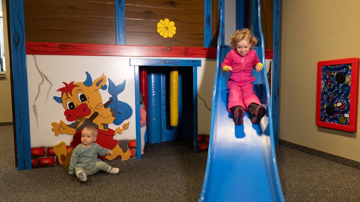 Im Indoor-Spielplatz gibt es noch mehr zu entdecken als flotte Kühe, beispielsweise eine Softplayanlage mit Brücken, Tunnel, Rutsche und allerlei weichen Elementen. Hier gibt’s definitiv keine blauen Flecken. Fazit: Ein schöner Bereich, der besonders für Kleinkinder sicher bespielt werden kann.
