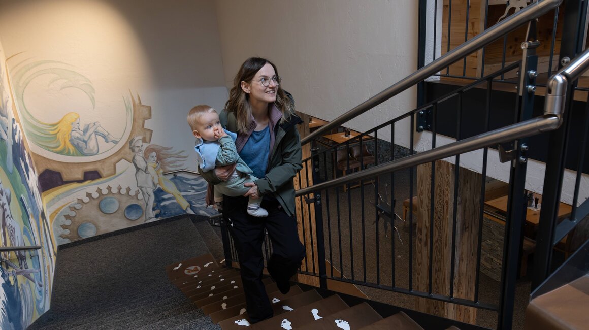 Im oberen Stock befindet sich das Kids Loft - unser zweiter Test-Spielplatz. Bevor wir ohne Schuhe die Treppen hochlaufen, parken wir zuerst unsere Kinderwägen und anschließend unsere Winterstiefel. Um nasse Füße muss sich hier keine Sorgen machen. Praktisch.