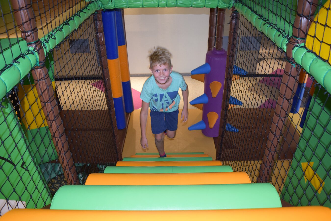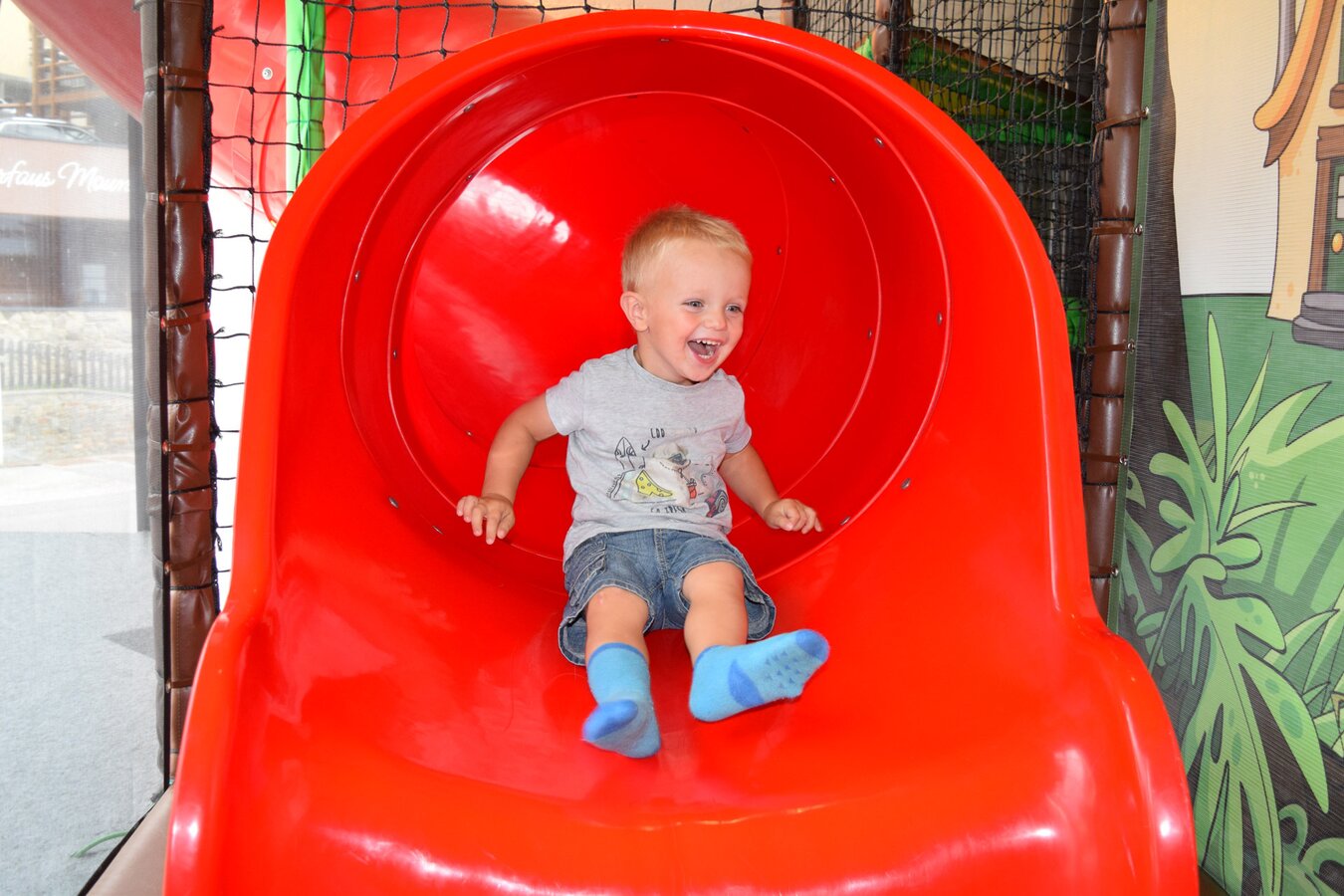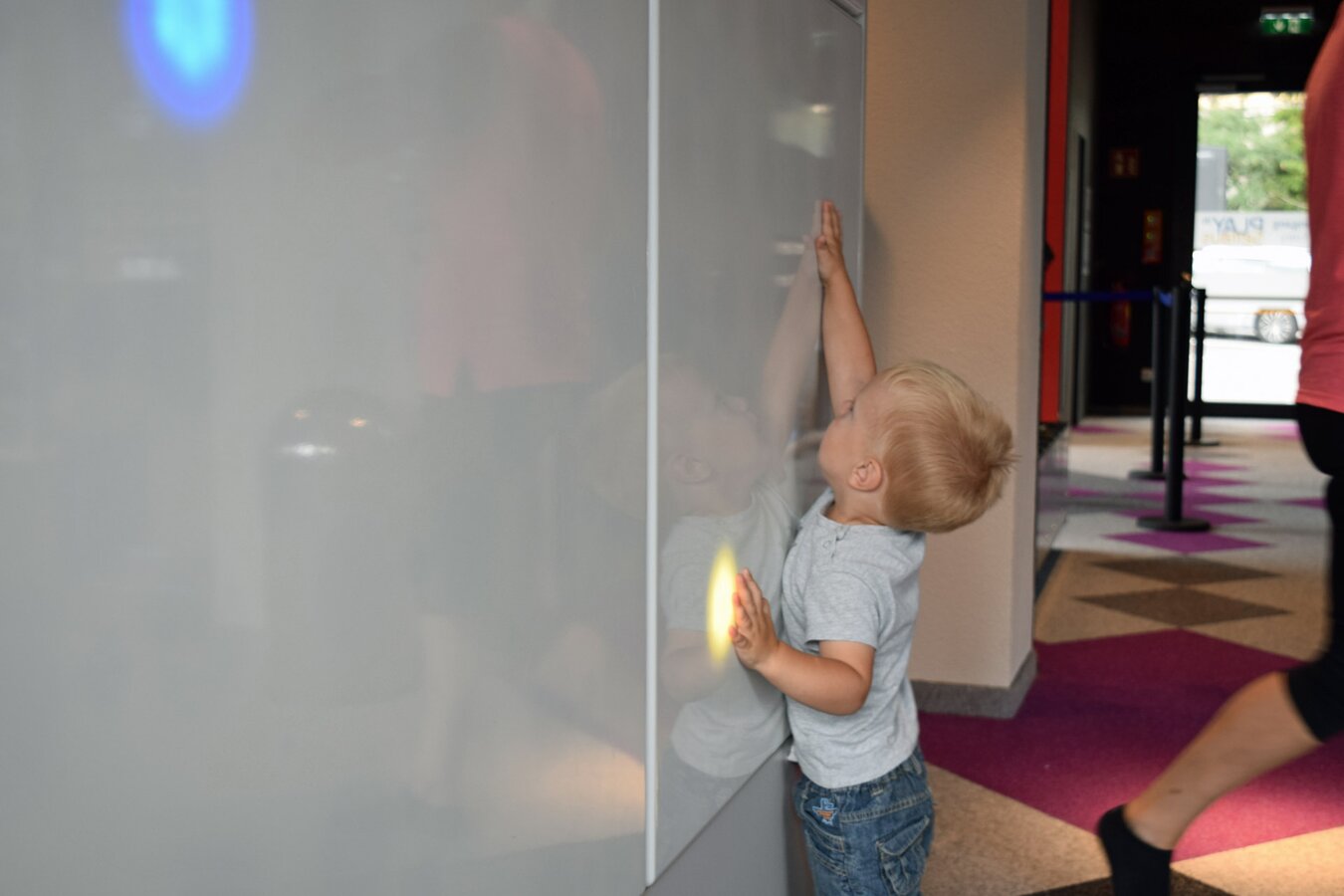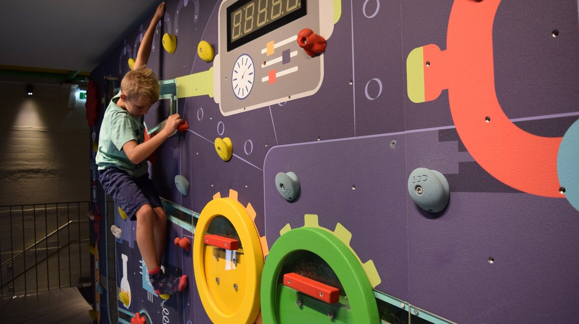 Bekanntlich halten die Erwachsenen bei diesem Tempo nicht lange mit. Für diesen Fall gibt es im Eingangsbereich bequeme Sitzgelegenheiten zum Ausruhen. Von hier aus kann man die kleinen Energiebündel über Bildschirme im Auge behalten und ein Kaffee-, Getränke- und Snackautomat bietet die Möglichkeit, sich zu stärken. Neben den Sitzgelegenheiten bieten Tablets und eine PlayWall mit Spiele-Klassikern wie Memory oder Vier Gewinnt Unterhaltung für Groß und Klein.