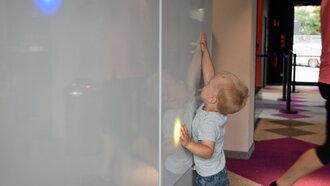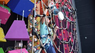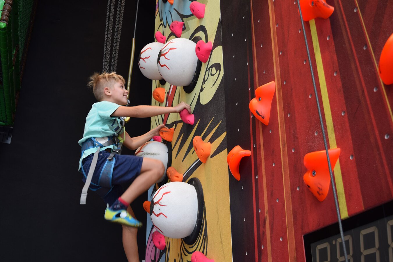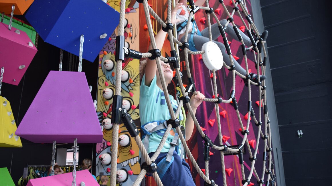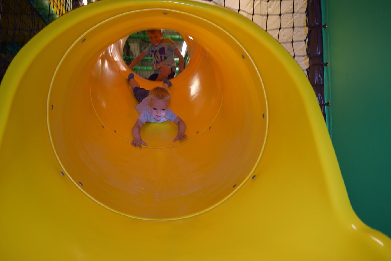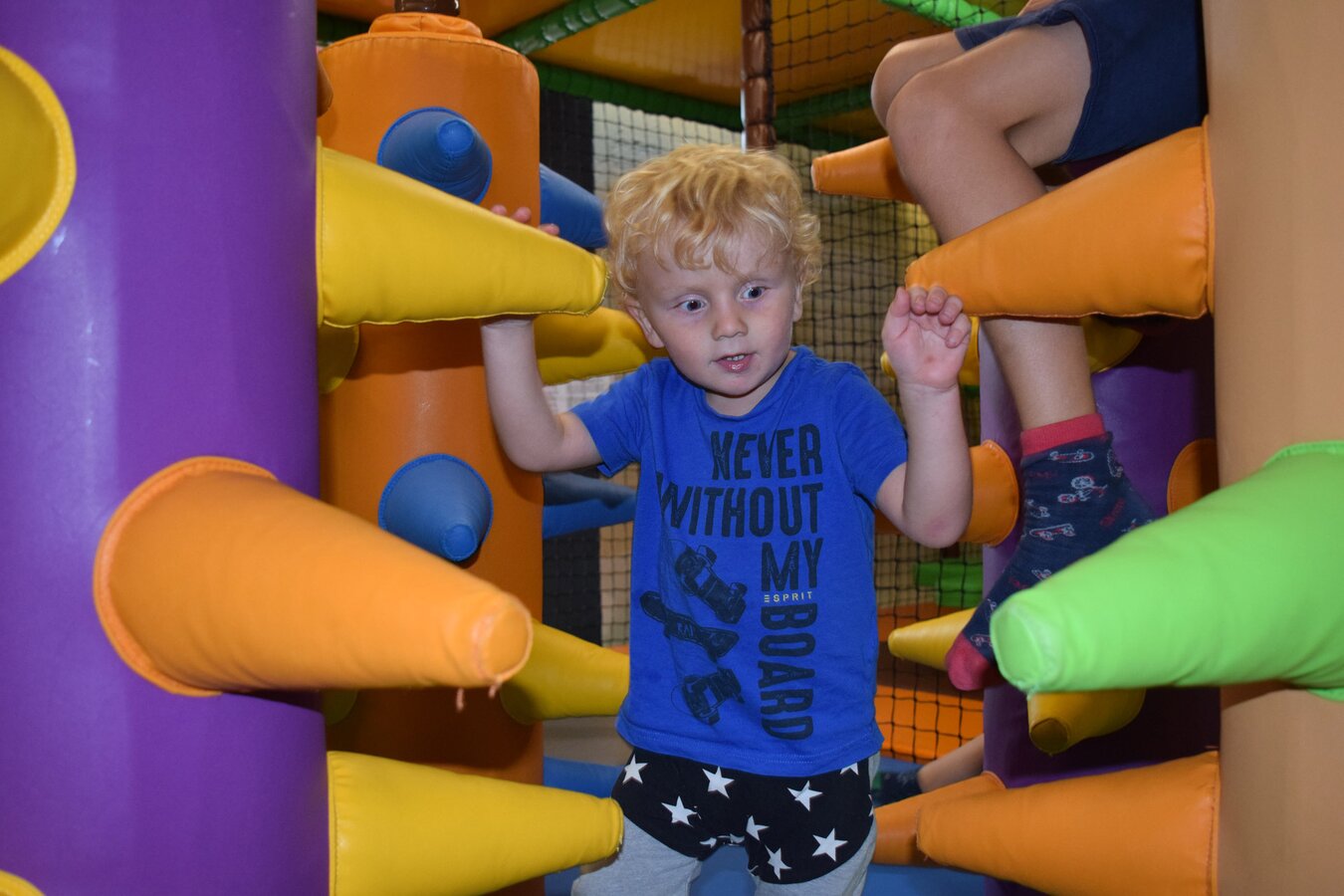 Bekanntlich halten die Erwachsenen bei diesem Tempo nicht lange mit. Für diesen Fall gibt es im Eingangsbereich bequeme Sitzgelegenheiten zum Ausruhen. Von hier aus kann man die kleinen Energiebündel über Bildschirme im Auge behalten und ein Kaffee-, Getränke- und Snackautomat bietet die Möglichkeit, sich zu stärken. Neben den Sitzgelegenheiten bieten Tablets und eine PlayWall mit Spiele-Klassikern wie Memory oder Vier Gewinnt Unterhaltung für Groß und Klein.