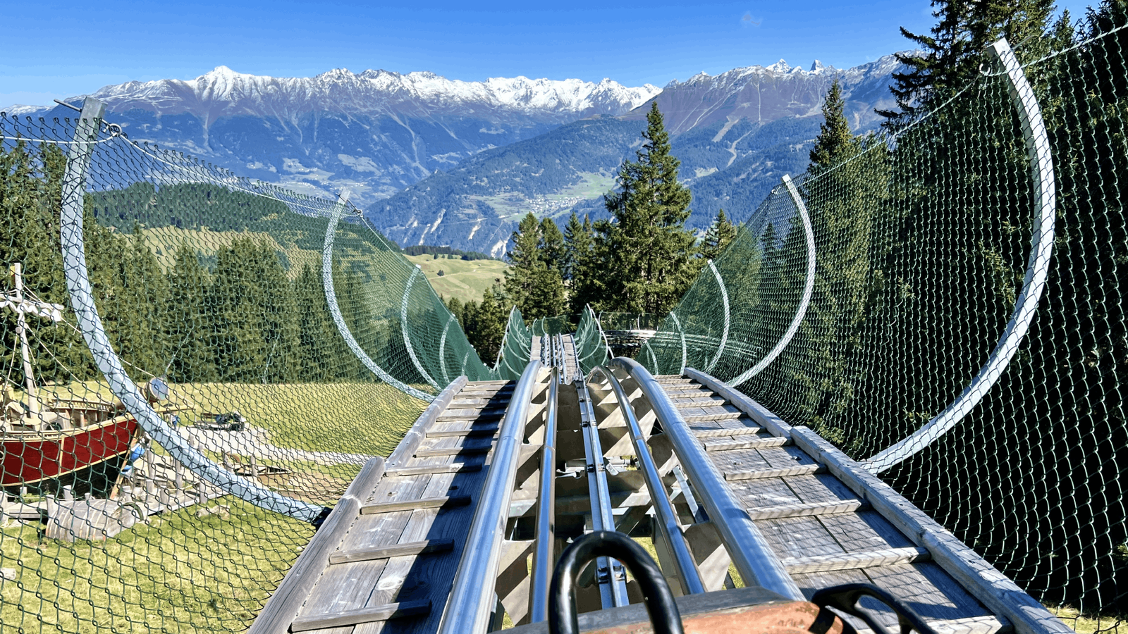 So eine coole Rodelbahn wie den Familien-Coaster-Schneisenfeger gibt es übrigens nicht nur am Högsee. Auch am Sommer-Funpark Fiss erwartet euch Rodelspaß. Hier wird die Abfahrt mit der Sommerrodelbahn “Fisser Flitzer” sogar noch etwas schneller. Bis zu 45 Stundenkilometer sind möglich!