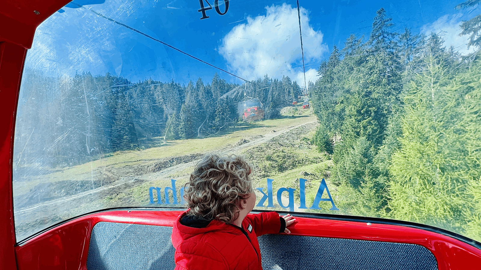 Die Bergbahn-Highlights für unseren Sohn: jedes Mal, wenn es ein bisschen gewackelt hat, und die Kühe, die wir auf einigen Fahrten sehen und hören konnten.