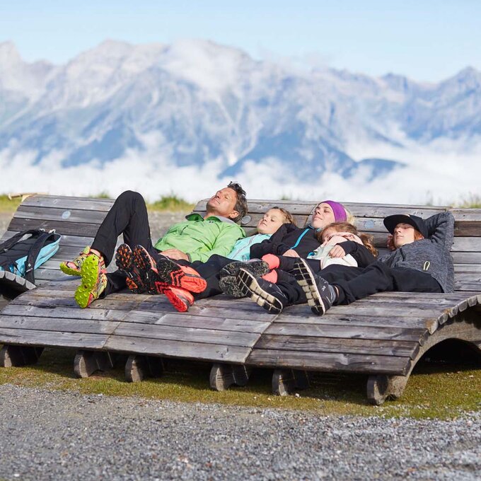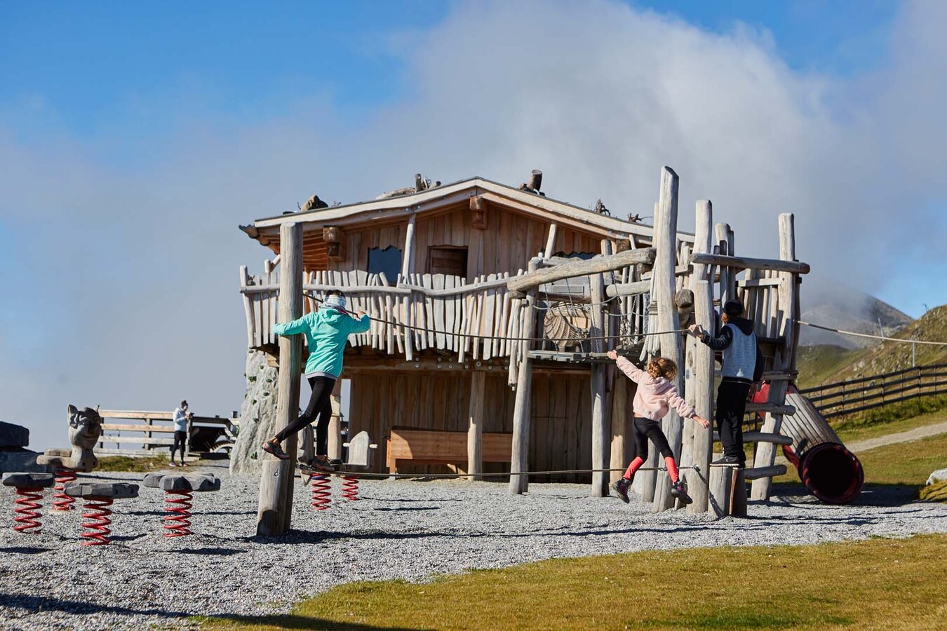 "Do douba im Kinder-Bergwerk kenna si meina Kindr so richtig austouba. Vor allem s`Spielheisla mit da Klettermöglichkeita gfollt ihna gonz bsundrs. Und i genieß drweil dia gewaltige Aussicht", so Mama Bianca. Das Schönjoch und das Kinder-Bergwerk ist der Lieblingsort der jungen Familie. Hier kommt definitiv jedes Familienmitglied voll auf seine Kosten.