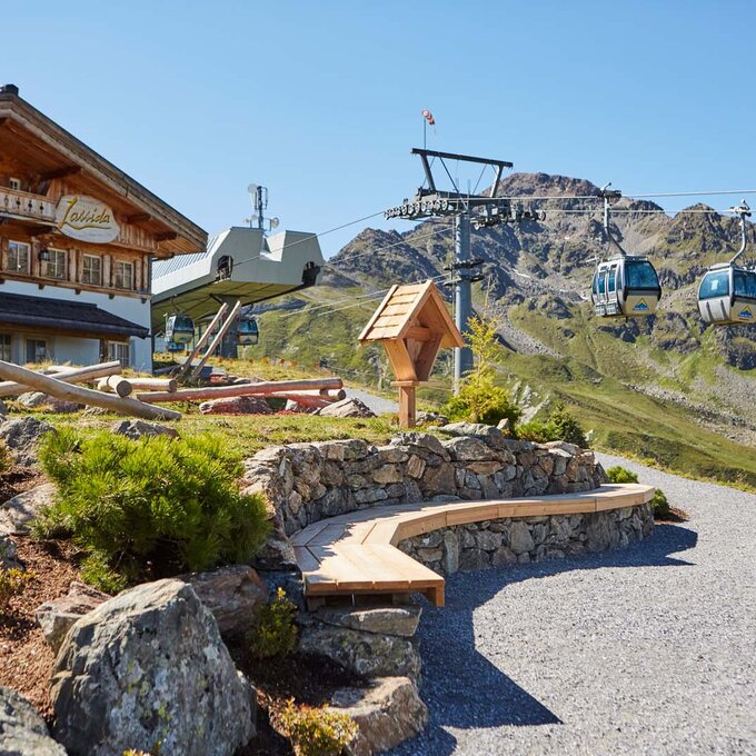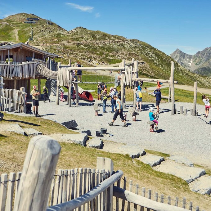 Aber auch die Lage und die gute Erreichbarkeit sprechen für das hochalpine Spielvergnügen. Denn so liegt es nicht nur wenige Schritte von der Bergstation der Schönjochbahn entfernt, sondern auch das Panoramarestaurant BergDiamant schließt direkt an. In dem modernen, vorwiegend aus Glas und Holz gestalteten Bergrestaurant, kannst du aus einer großen Auswahl an kulinarischen Köstlichkeiten wählen. Unser Tipp für Schleckermäulchen: Eine Tasse Kaffee oder Kakao und ein Stück Kuchen - natürlich selbstgmacht - auf der großen Sonnenterrasse genießen. Einfach nur himmlisch! Moderne Sanitäranlagen und Wickelmöglichkeiten sorgen dafür, dass Familien hier unbeschwerte Stunden verbringen können.