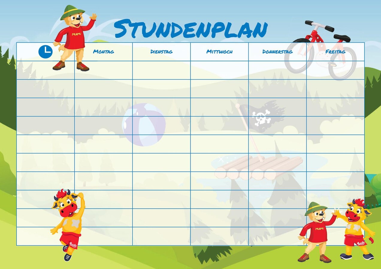 Drückst du auch schon die Schulbank? Bestimmt hat dir deine Lehrerin und dein Lehrer schon verraten, was von Montag bis Freitag so alles Spannendes auf deinem Stundenplan steht. Auf welches Fach freust du dich denn am meisten? Wir, deine zwei lustigen Maskottchen aus Serfaus-Fiss-Ladis, haben eine kleine Überraschung für dich zum Schulstart. Weiterlesen und den bunten SFL-Stundenplan gleich ausdrucken!