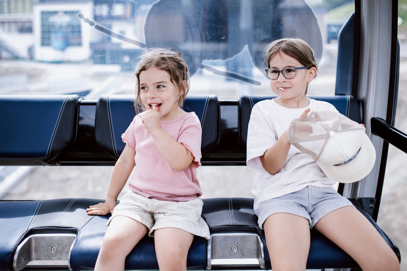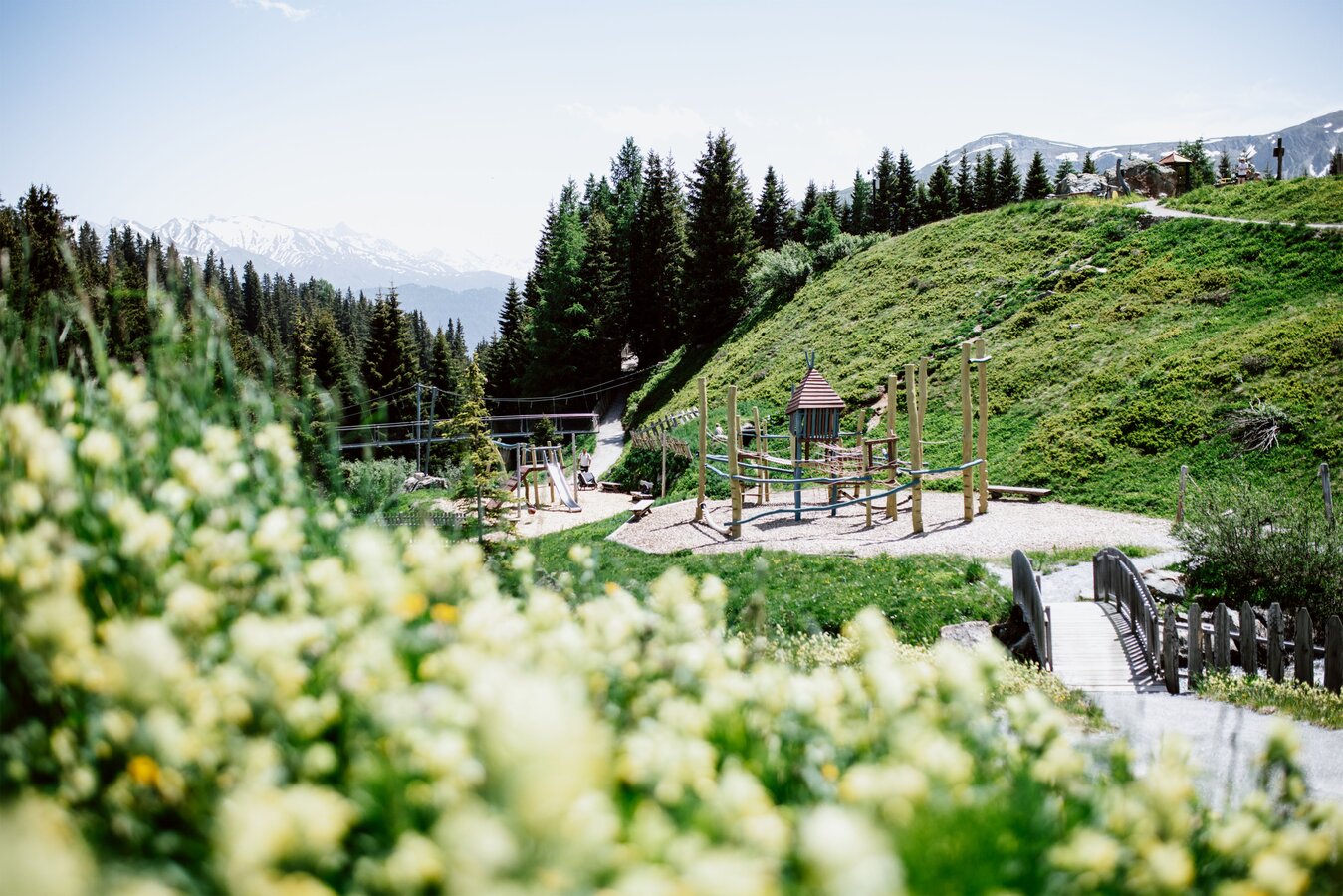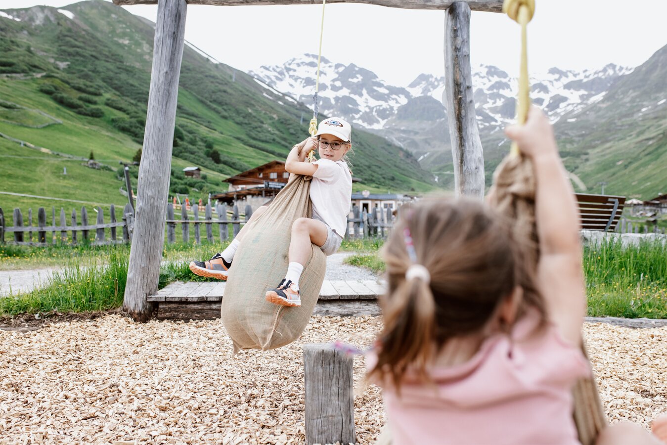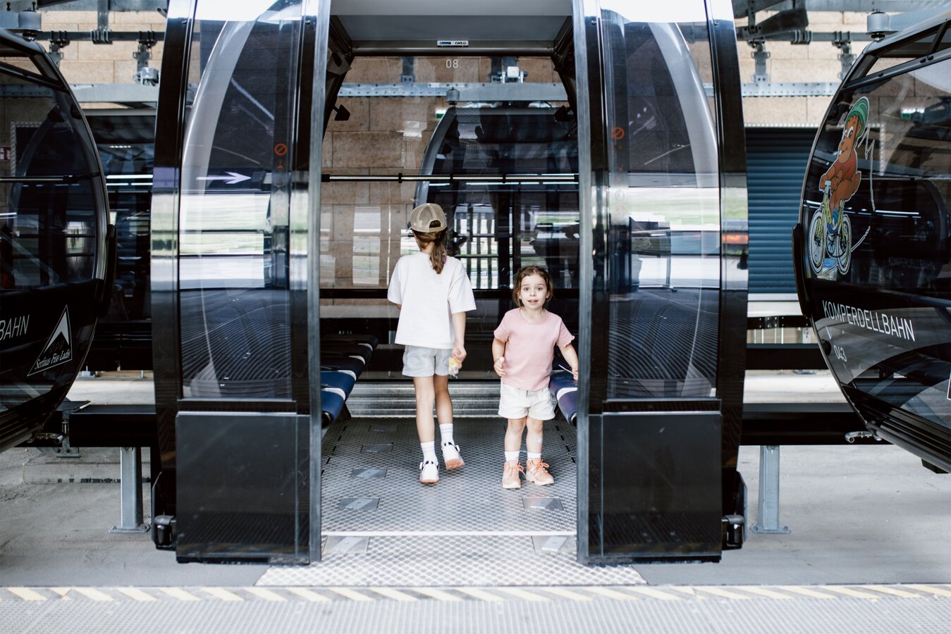 Von der Bergstation aus führt ein kurzer Spazierweg zum Murmliwasser, das auf 1.980 Metern Seehöhe liegt. Für den Rückweg steht vom Spielpark aus ein Förderband zur Verfügung. Besonders mit müden Kindern und Kinderwagen ist dies äußerst praktisch. Die namensgebenden Murmli – also die Murmeltiere – sind hier schon überall zu finden: Als überlebensgroße, aufblasbare Figuren, aus Holz geschnitzt und sogar als lebende Tiere im Murmeltiergehege, wie Ella und Flora später entdecken werden.