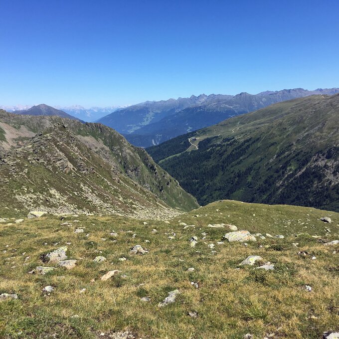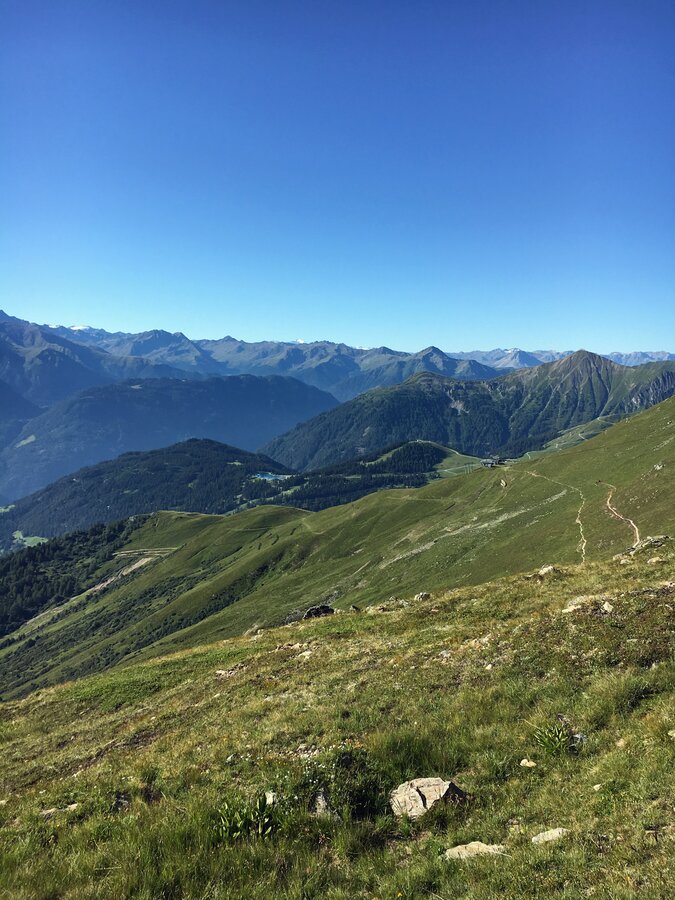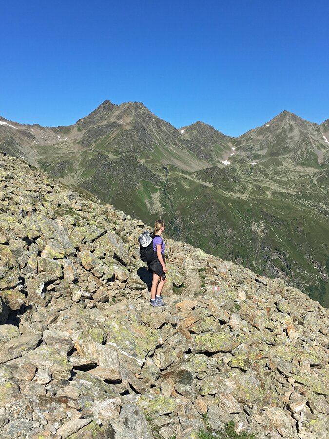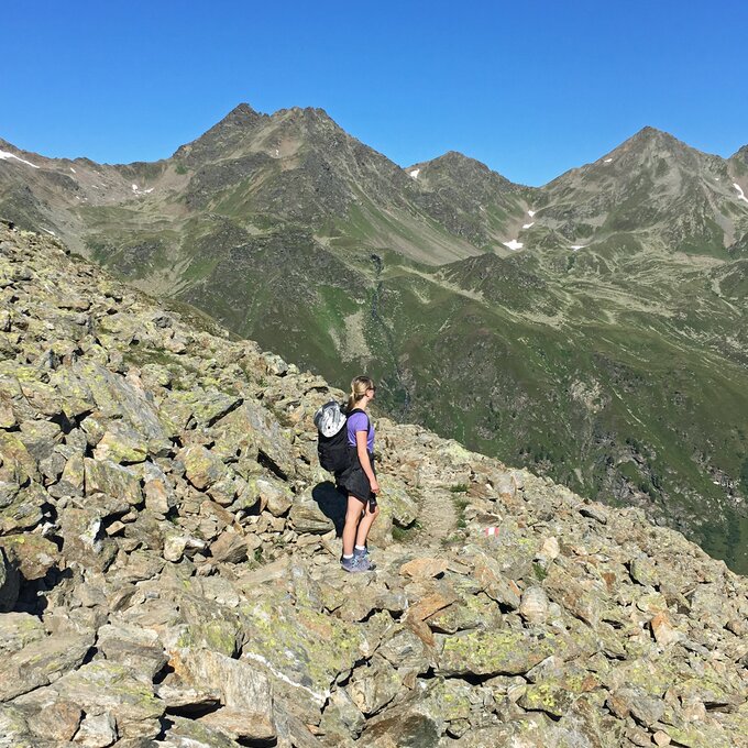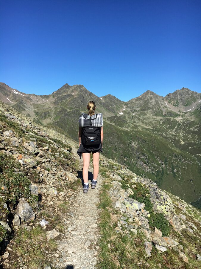 Gesagt, getan - wir starteten ins Abenteuer „Almpicknick“ am frühen Sonntagmorgen. Für unsere Wanderung hatten wir perfektes Wetter. Ein richtiger Sommertag lag vor uns und wir starteten - aufgrund unseres straffen Programms - gleich mit einer der ersten Gondeln hinauf aufs Fisser Joch. Schon in der Schönjochbahn konnten wir erahnen, dass uns ein traumhafter Tag mit Sonne pur bevor stand. Gerade an solchen Tagen kann man der Hitze – mit Temperaturen von über 30 Grad – super mit einem Besuch am Berg entweichen. Aber Vorsicht: Eincremen nicht vergessen! Gerade am Berg ist die UV-Strahlung der Sonne besonders hoch.