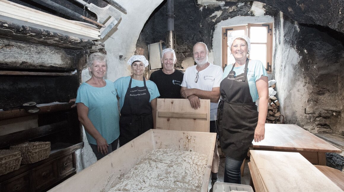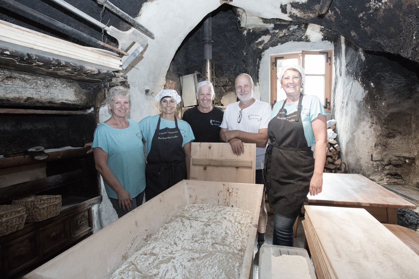 „Bei uns zuhause wurde früher ein Mal im Monat gebacken“, berichtet Stefan Netzer, der einer einheimischen Bauernfamilie entstammt, aus seiner Kindheit im Ort. Heute steht er dem 2020 gegründeten Backverein Ladis vor. Seine Augen leuchten, wenn er sich daran erinnert, wie sein Opa einst das trockene Vinschgerl zum Frühstück in den Kaffee eintunkte, um es aufzuweichen. „Die Lagerung des Brotes war damals noch ganz anders als heute“, ergänzt Stefans Frau Ulrike, die ebenfalls eine wichtige Rolle im Backverein spielt. „Zudem sind die Öfen hier in der Tiroler Region Serfaus-Fiss-Ladis schon sehr speziell, betont sie“. Stefan nickt. „Die Außenbacköfen haben im Oberinntal eine lange Tradition“, erklärt er. In Ladis gibt es ihm zufolge noch drei von ursprünglich „fünf oder sechs“ solcher Öfen, von denen wiederum zwei betriebsfähig sind. „Einer davon steht bei uns im Rechelerhaus“, so Stefan.