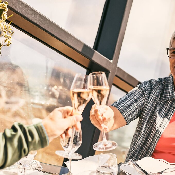 Wusstest du, dass der postmoderne Gourmet-Kubus nicht nur ein exklusives Bergrestaurant ist, sondern zugleich auch eines der höchstgelegenen Standesämter Europas? Aber augepasst: Bei diesem 360-Grad-Panorama muss man aufpassen, dass einem im entscheidenden Moment nicht die Stimme versagt.