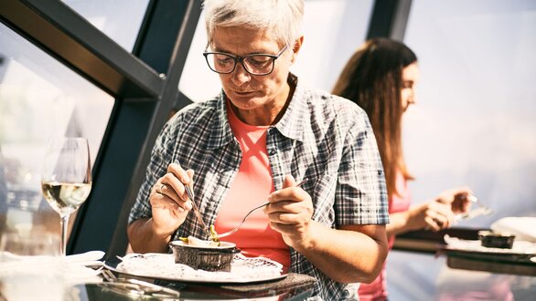 Also ich gehöre ja zu den Menschen, die sich im Urlaub gerne mal was gönnen. Für mich geht nichts über schöne Kulinarikmomente und das Verkosten von Spezialitäten aus der Region – gerne auch neu und KREATIV interpretiert. Schließlich will man ja auch überrascht werden. Das hat Peter definitiv geschafft! Zudem lege ich Wert auf Essen mit gutem GEWISSEN. Da leistet Serfaus-Fiss-Ladis einen wertvollen Beitrag. Die Bergbahnen arbeiten nämlich MIT und nicht gegen die Bauern und nehmen auch ihre Produkte ab. Und das schmeckt man. Ein AUSSERGEWÖHNLICHES SPEISEZIMMER wie der Crystal Cube setzt dem Ganzen natürlich das Krönchen auf. Einfach herrlich! Der Luxury Lunch ist definitiv ein besonderes Erlebnis für alle Kulinarik-Liebhaber, die die Region mit allen Sinnen erleben wollen.
