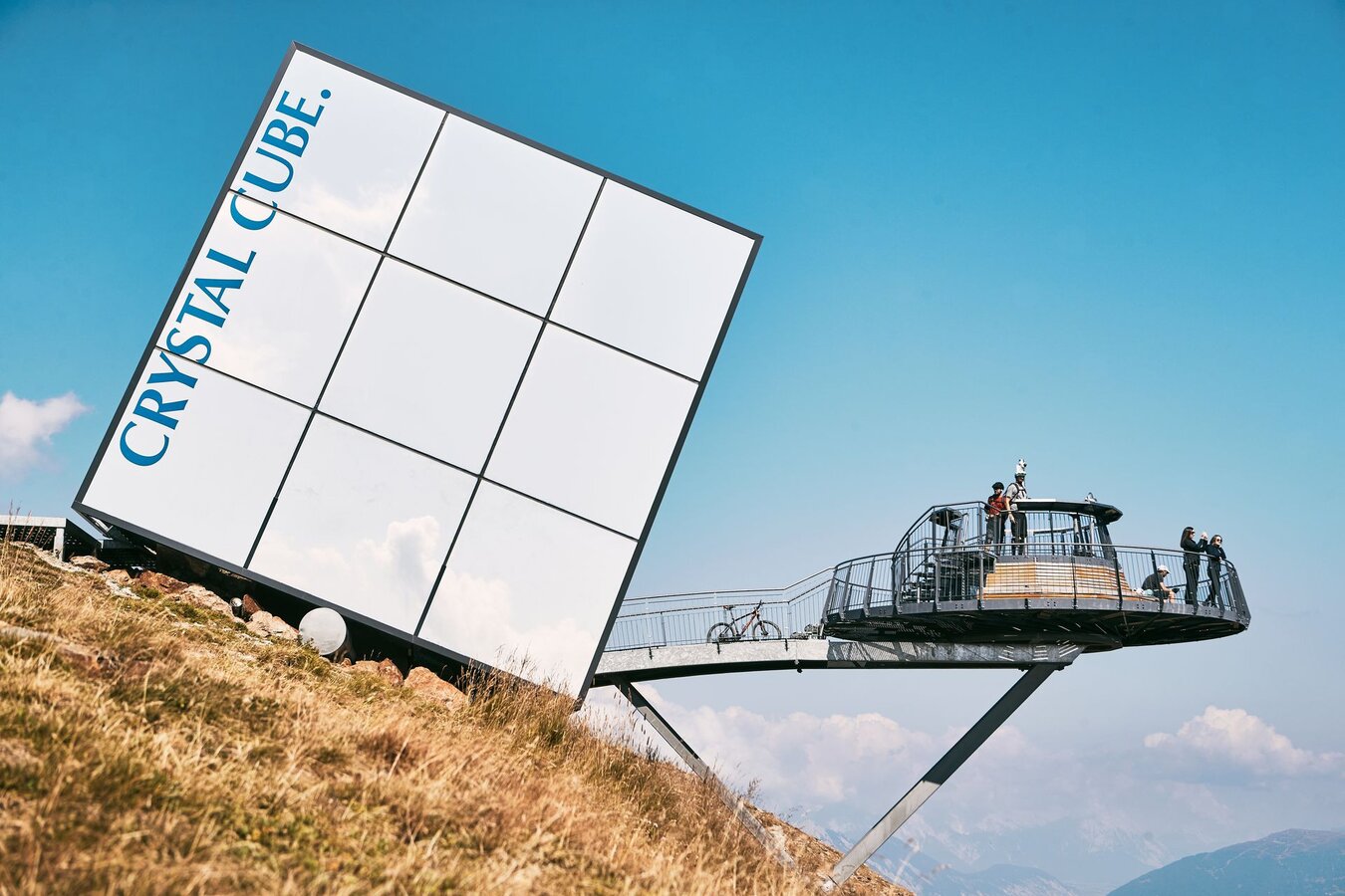 Der Crystal Cube ist schon ein Phänomen für sich. Die Hülle des Gourmet-Würfels erinnert mich ein wenig an HARRY POTTER. Wenn er nämlich unentdeckt bleiben will, nutzt er seinen Tarnumhang: Damit kann er zwar alles sehen, bleibt aber vor den Blicken anderer verborgen. So verhext geht es gewissermaßen auch beim Crystal Cube zu. Im Inneren des Würfels fühlen wir uns quasi wie unter einem TARNUMHANG: Von außen gelingt es nämlich nicht, einen Blick durch die verspiegelten Scheiben zu erhaschen, nur von innen eröffnet sich ein beeindruckendes Gipfelpanorama. Also uns beeindruckt der Ort unseres heutigen Mittagessens.