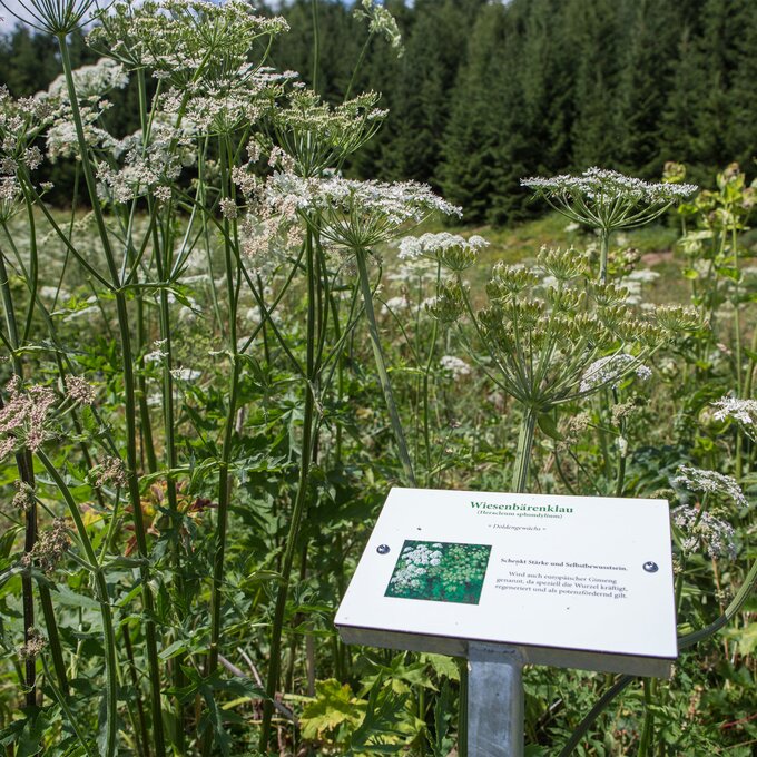 Alle Gewächse, die entlang des Weges wachsen, wurden nicht gepflanzt. Wildwachsende Kräuter sind widerstandsfähiger als gepflanzte und werden deshalb in den Wäldern und Wiesen rund um Serfaus-Fiss-Ladis nicht so schnell verschwinden.