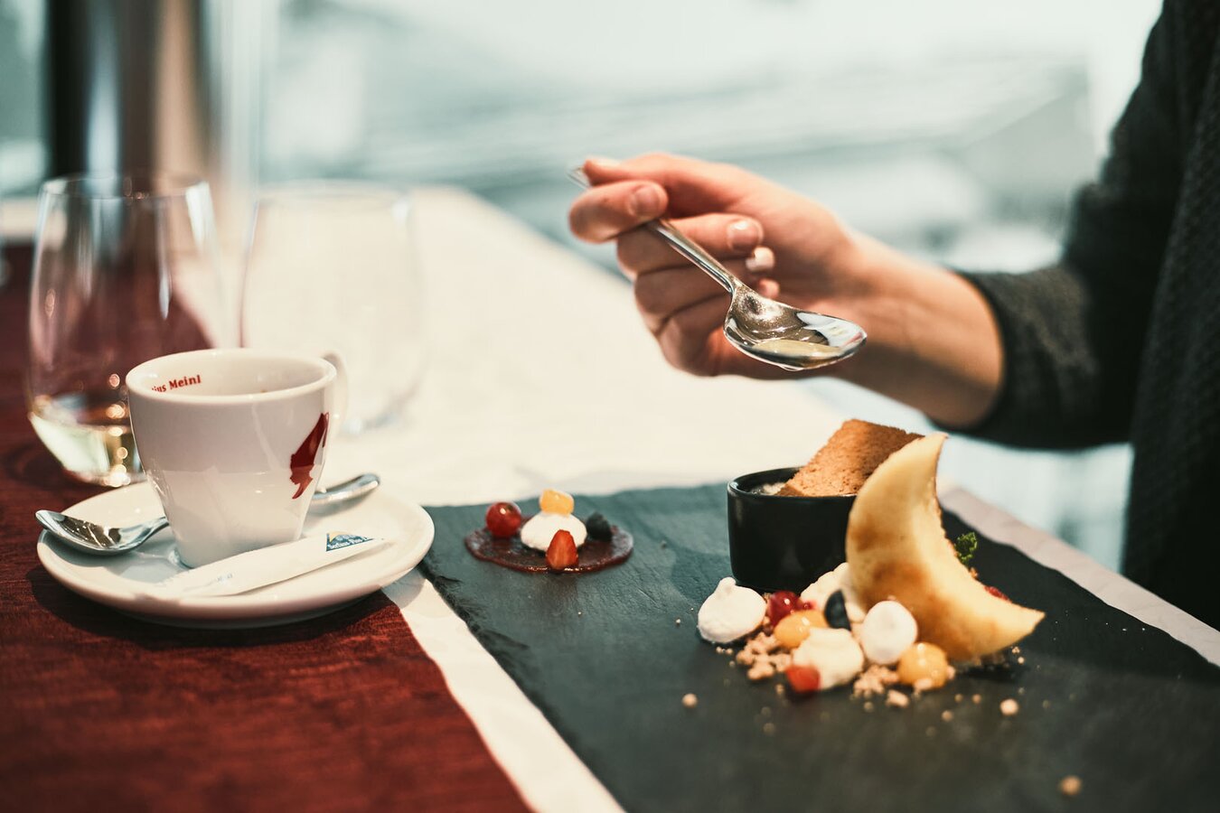 Nach fünf wohlschmeckenden Gängen in unserer lichtdurchfluteten Kapsel, konnten wir uns nicht mehr als HUNGRIGE LÖWINNEN bezeichnen. Aber „ein Dessert geht doch immer!“, sangen Jasmine und ich im Chor. Findest du nicht auch?