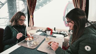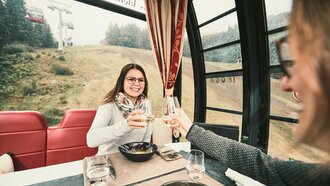 - die ERSTE GENUSSGONDEL 2008 ihre Fahrt aufnahm? 2010 gingen wir dann mit 2 Kabinen in Betrieb. Seit 2012 bieten wir neben dem MITTAGESSEN auch FRÜHSTÜCK in der Gondel an.