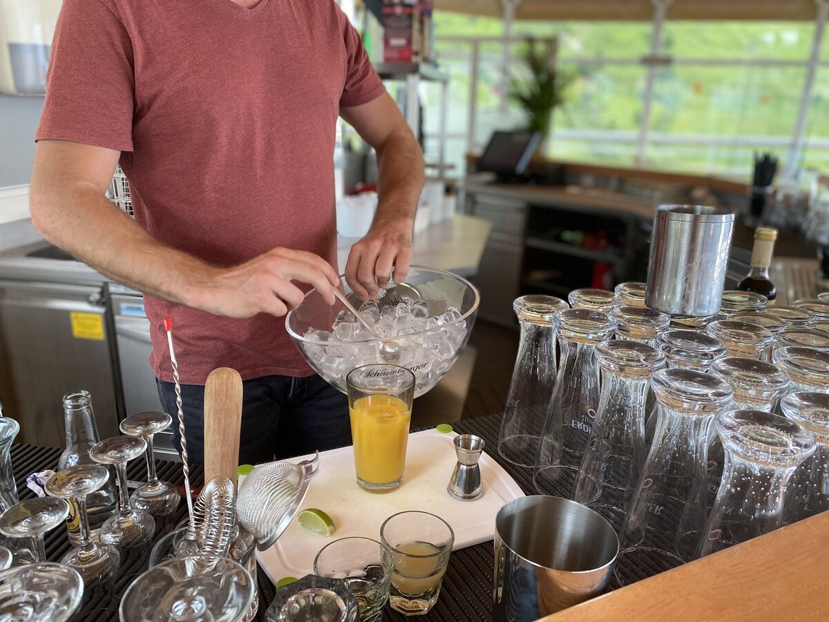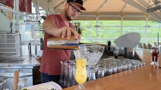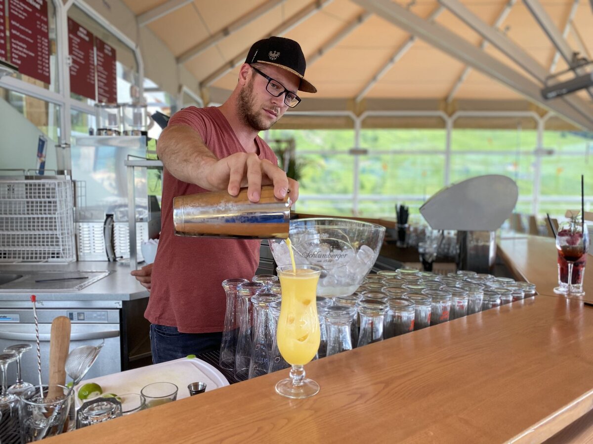 Nach seiner Kochausbildung im Schlosshotel im eigenen Dorf jobbte der Fisser in einer weiteren Tiroler Urlaubsdestination. Nach einigen Saisonen in der Ferne zog es den Anfangdreißiger jedoch wieder zurück in seine sonnige Heimat. Nach einigen Jahren hinter Bars lokaler Gastronomiebetriebe, u. a. der Hexenalm in Fiss, verzaubert er nun auf der Möseralm seine Gäste. Seit mittlerweile zwei Jahren leitet er nämlich das gemütliche Bergrestaurant, das mit Sonnenterrasse und Spielplatz ein wahrer Magnet für die ganze Familie ist. Die Bar in der Möseralm nennt er sein Eigen. Die Harmonie zwischen Getränken und Speisen hat es ihm wahrlich angetan. Mit einer Sommelier-Ausbildung im Gepäck mixt er gekonnt dein Urlaubsgetränk. Neben klassischen Durstlöschern und ausgewählten Weinen aus Österreich, bereichert etwa der „Fissky“ aus der urwüchsigen Fisser Imperial Gerste die Karte. Wie schmeckt dir der Fisser Whisky?