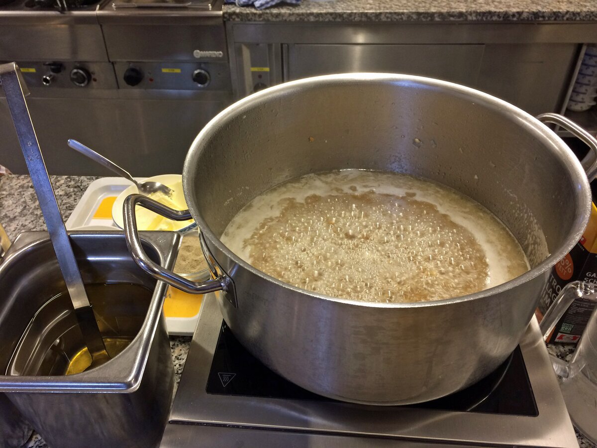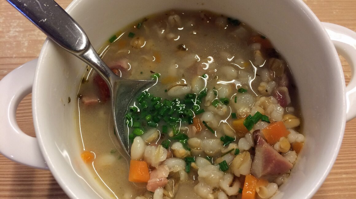Die Gerste sollte stets über Nacht eingeweicht und am nächsten Tag durch ein Sieb abgegossen werden.