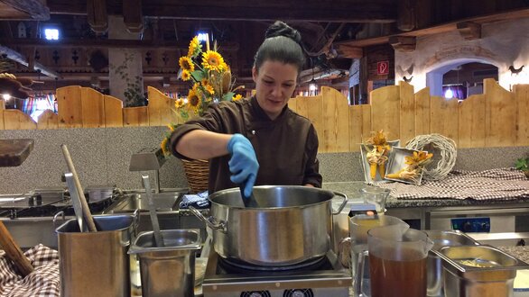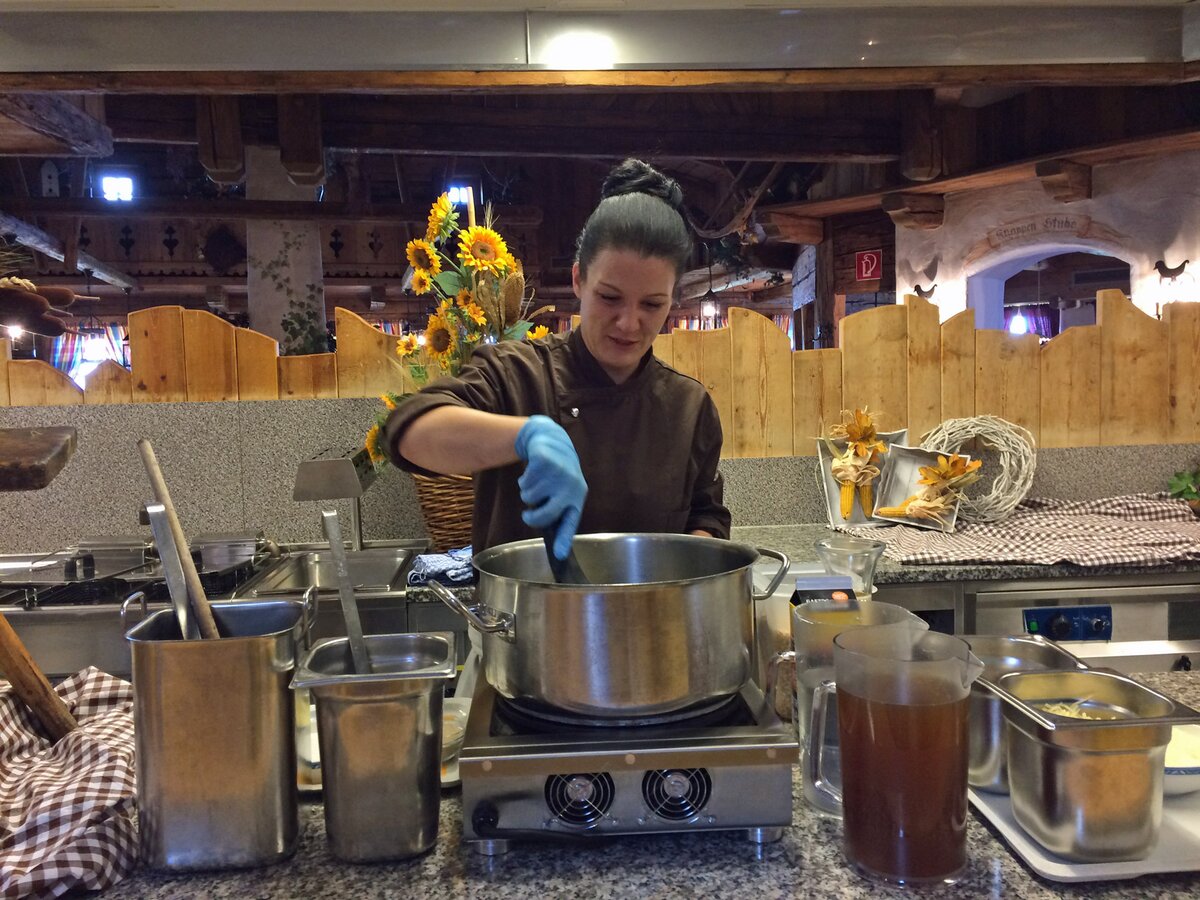 Unsere Köchin hatte bereits alles vorbereitet, portioniert, gemessen und geschnippelt. Eine gute Vorbereitung ist schließlich die halbe Miete. Mit hoher Authentizität und Tiroler Schmäh erklärte Steffi die Zubereitung der einzelnen Gerichte.