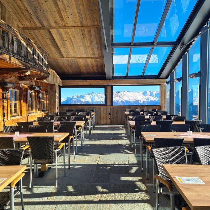 Sieh dich um! Das, was dieses Bergrestaurant ausmacht, ist, dass es unglaublich viel Gemütlichkeit ausstrahlt. Hier ist es einfach HEIMELIG. Uns war es wichtig, dass es trotz der Größe den Hüttencharakter nicht verliert. Zuerst hatten wir eine große Halle. Wir entschieden uns dann, diese in kleine und größere Stuben zu unterteilen. Unsere Gäste sollen sich in den NISCHEN UND SITZECKEN wohlfühlen. Das Holz für das Lassida stammt dabei von alten STADELN. Sie wurden abgetragen und hier verbaut.