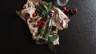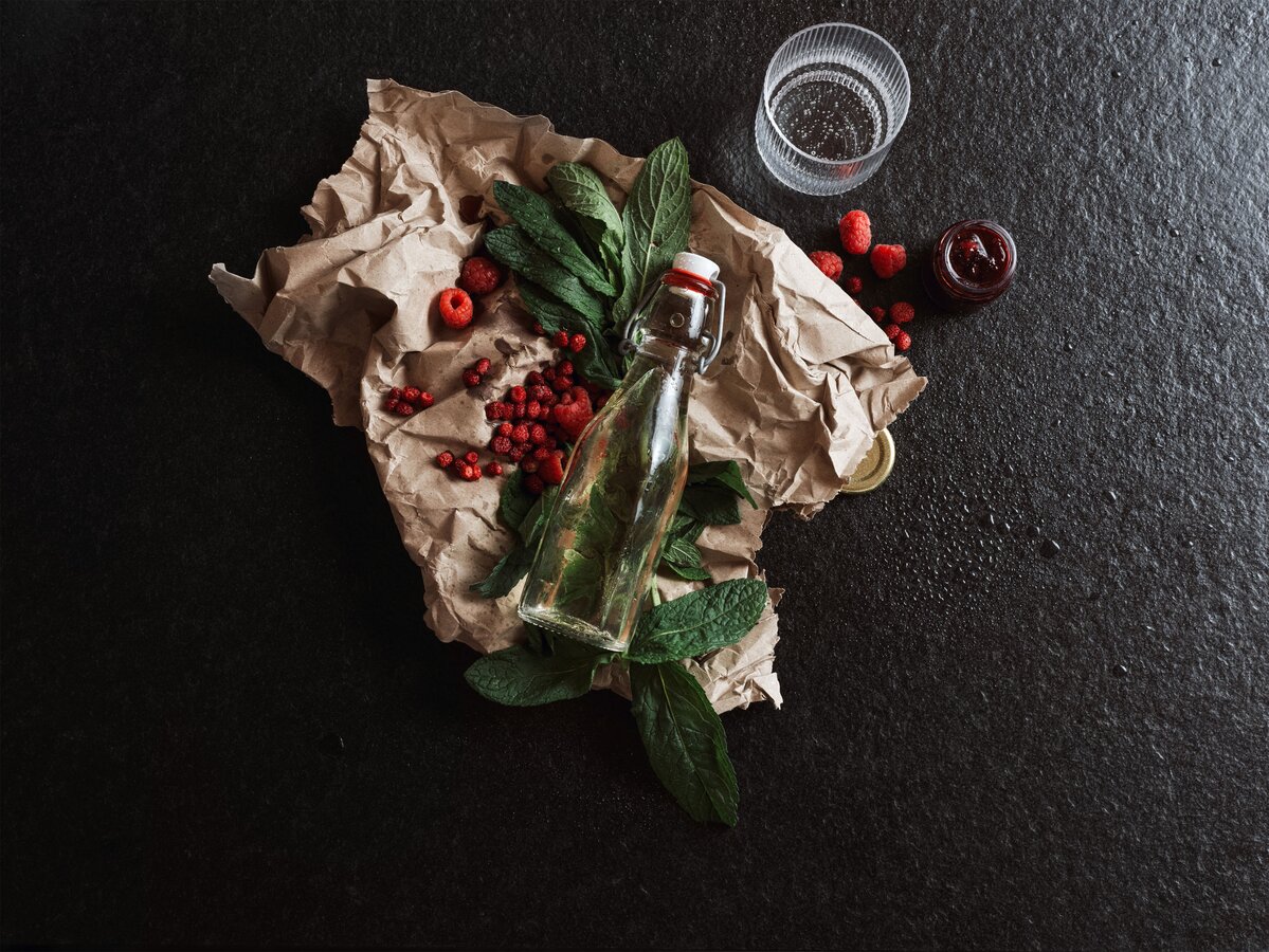 - Mit selbstgemachtem Sirup (Holunder, Beeren, Minze, Brennnessel etc.) süßen und/oder mit Früchten (z.B. Äpfel), Beeren (z.B. Himbeeren), Kräutern (z.B. Thymian) oder Gemüse (z.B. Gurken) verfeinern.