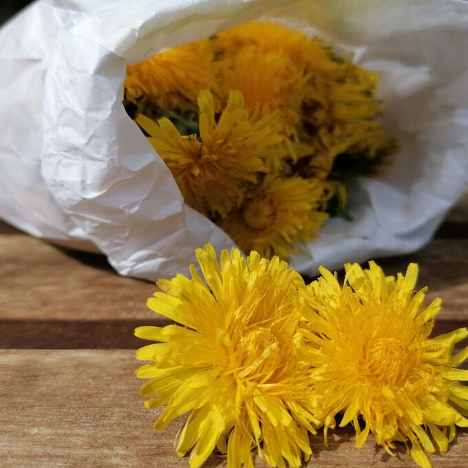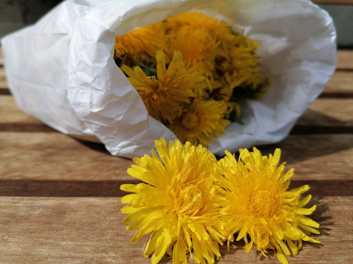 Die Blüten des Löwenzahns am besten in einen Papiersack geben. Beim Pflücken kann schon mal etwas Milch aus den Stängeln freigesetzt werden. Das Sammeln lohnt sich aber. Die Honigalternative noch am Sammeltag zubereiten, da sich die Blüten sehr schnell schließen. Von den Himmelschlüsseln benötigst du nur die dottergelben Blüten. Diese kannst du in Ruhe zuhause aus ihrem Kelch zupfen. Der Duft der echten Himmelschlüssel ist einzigartig. Vertrau beim Pflücken deiner Nase. Die Frühlingsblüher wachsen erfreulicherweise bei uns im Garten. Dort kann ich sie für meinen Sirup bedenkenlos ernten.