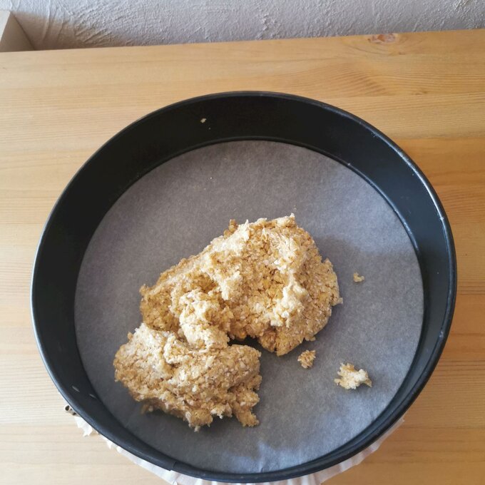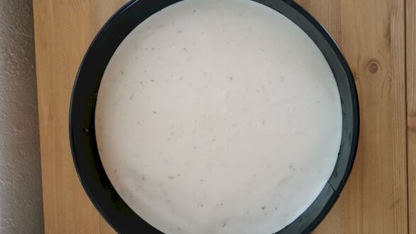 - Den Rhabarber wild mittig mithilfe eines Backrings platzieren.