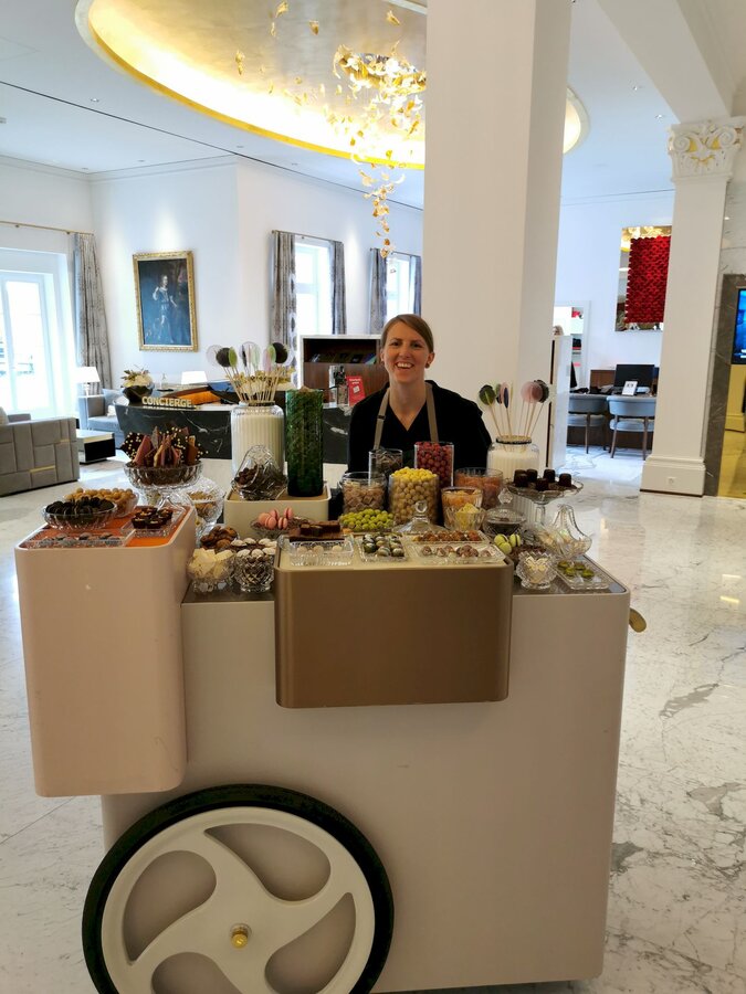 - Zum Schluss die gepoppte Fisser Imperial Gerste drübergeben. Das verleiht dem Dessert den extra Crunch.