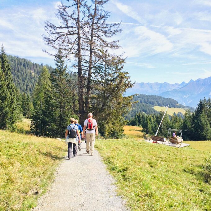 Nach nur wenigen Schritten erreichten wir unseren ersten Stopp: die Komperdellalpe. Der erste Teil unserer Wanderung ist übrigens der beliebte kinderwagentaugliche Panorama-Genussweg, auf dem du im Sommer von Serfaus bis nach Ladis wandern kannst (12,68 km, Gehzeit: 4 Std.). Im Winter ist eine Wanderung zwischen Komperdell und Möseralm möglich (5,24 km, Gehzeit: 1 h 15 min).