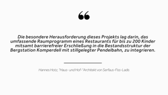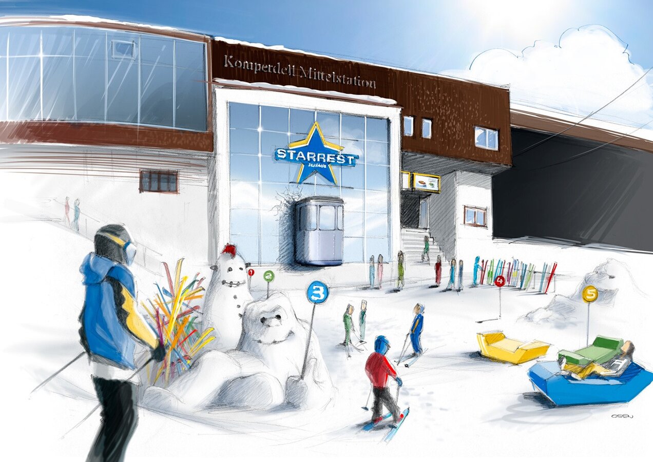 Hinter dem Bau des Starrest stecken viele Köpfe, unter anderem Architekt Hannes Hotz, der neben der neuen Komperdellbahn, dem Bikepark Serfaus-Fiss-Ladis auch dem Starrest seinen Baumeister-Stempel aufgedrückt hat. „Hannes war Skilehrer bei uns und kannte die Problematik. Er ist einer von uns und weiß, was er plant“, erzählt Phil Olavide.
