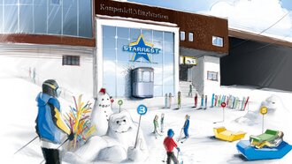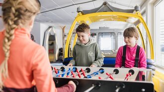 Neben einem Exkurs in die Skigeschichte, einem Blick in und unter die Schneedecke, Analysen von Tierspuren oder Hinweisen zum richtigen Verhalten bei einem Lawinenabgang oder einer Helikopterlandung, sind ein alter Pistenbully und Spiele-Tablets unter anderem fester Bestandteil der Erlebnisgastro am Berg.