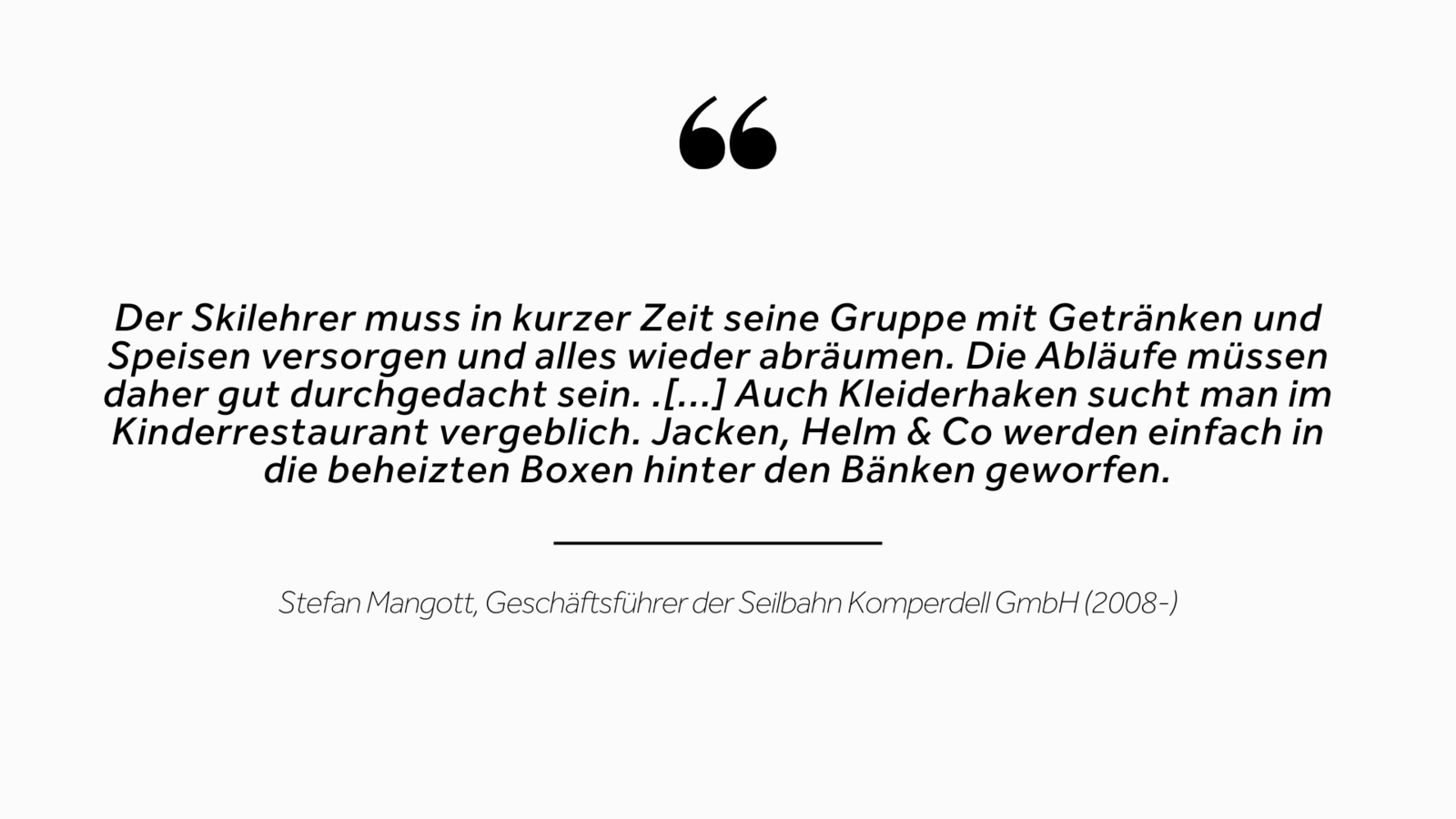 „Die Realität im Winter war jedoch eine andere. So mussten wir uns anpassen und das Gastrokonzept überarbeiten. Pommes und Limo gehören einfach dazu“, gestehen sich die zwei Herren ein. Neben anfänglichen Menü-Hoppalas hat sich das Gastrokonzept bewährt. Alles sollte das Prädikat unkompliziert erhalten.