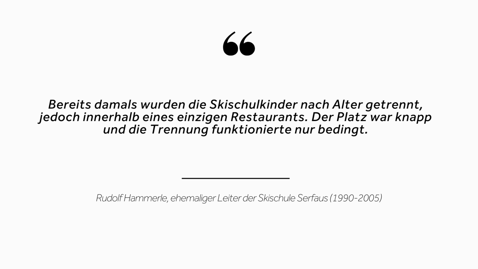 Für eine Antwort auf meine Frage, warum bereits in den Siebzigern die Notwendigkeit eines eigenen Kinderrestaurants bestand, treffe ich mich mit dem ehemaligen Leiter der Skischule Serfaus Rudolf Hammerle (1990-2005). Er ist Vollblut-Skifahrer, den es auch im höheren Alter auf der Piste keinesfalls stinglt und der es wissen muss: Schließlich hat der charismatische Tiroler die Entwicklung der Skischule und der Region maßgeblich beeinflusst.