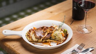 „Überall, wo es möglich ist, setzen wir auf regionale, lokale und saisonale Produkte. Unsere Fisser Imperial Gerste findet sich in der Gerstlsuppe, im Brot, Müsli, Risotto, Eintopf und sogar im Bier und Fissky wieder. Auch die Fisser Goggala werden in unseren Gerichten verarbeitet, beispielsweise für den KAISERSCHMARREN. Die Zusammenarbeit mit den BAUERN in unseren drei Dörfern und der Umgebung ist ausgesprochen gut. So ist das Schaffleisch aus Serfaus, die Hennen aus Zams, das Ziegenfleisch aus Tobadill oder das Tiroler GRAUVIEH-Fleisch direkt aus der Region. Etwa 70 Stück Grauvieh-Rinder werden jährlich von den Bauern zu einem höheren Preis gekauft.“