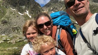Ich bin von klein auf gerne data-cke-saved-href="/de/Sommerurlaub/Wandern">gewandert. Mit Papa bin ich schon mit sieben Jahren auf allen Serfauser Gipfeln gestanden. Schon dazumal hat mir das sehr viel gebracht, mit Mama und Papa wandern zu gehen, ihnen zuzuhören, wie es früher beim Hüten war, die Namen der verschiedenen Ecken, Scharten und Gipfel zu lernen. Das Gebiet ist einfach wunderschön zum Wandern. Jetzt mit meiner Familie versuchen wir meistens im späten Frühling bzw. Anfang Sommer zu kommen, wenn die Wiesen in voller Blüte stehen. Groß und Klein kann da einfach so viel entdecken, angefangen von der Blumenvielfalt über die Walderdbeeren und Pilze im Wald bis hin zu den pfeifenden „Murmelen“, den Rehen und Gamsen. Das alles ist einfach immer ein wunderbares Erlebnis.